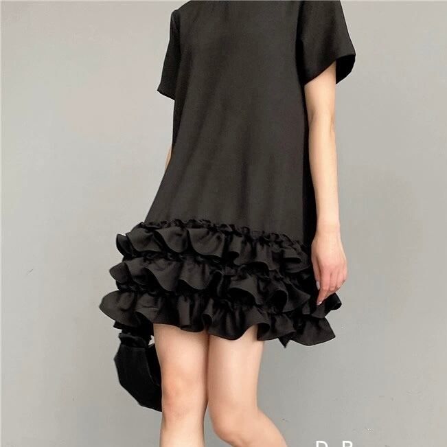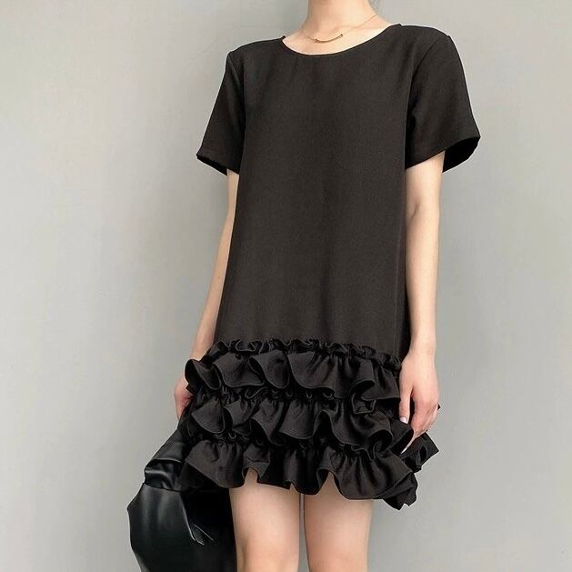 ワンピース ショート丈 袖あり 半袖 ラウンドネック ルーズ Aライン フリル ポケット プルオーバー ポリエステル 薄手 大人可愛い きれいめ シンプル カジュアル 大人 上品 お洒落 かっこいい レトロ 大人可愛い 大人女子 こなれ感 ラフ ラブリー キュート ガーリー 主役級 存在感 とろみ感 抜け感 無地 夏 10代 20代 レディース デート お出かけ 女子会 お泊まり 休日 アウトドア ショッピング 普段使い 韓国系 オルチャン 楽ちん モテ トレンド 流行 S M L ホワイト ブラック