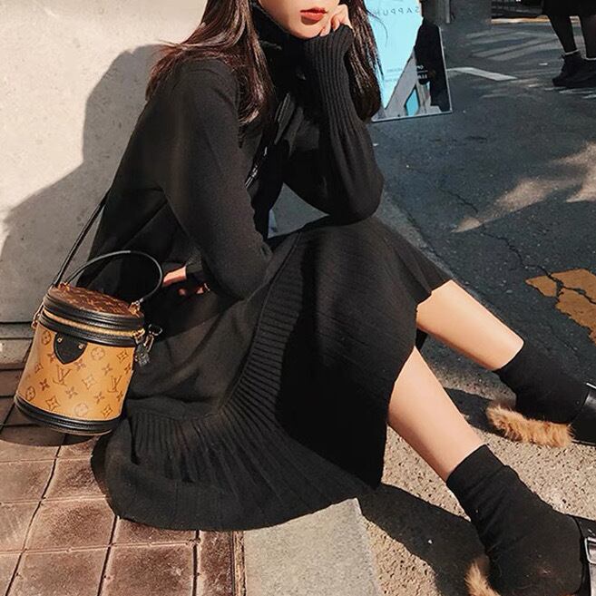 秋冬にオススメアイテムのタートルネックニットワンピース