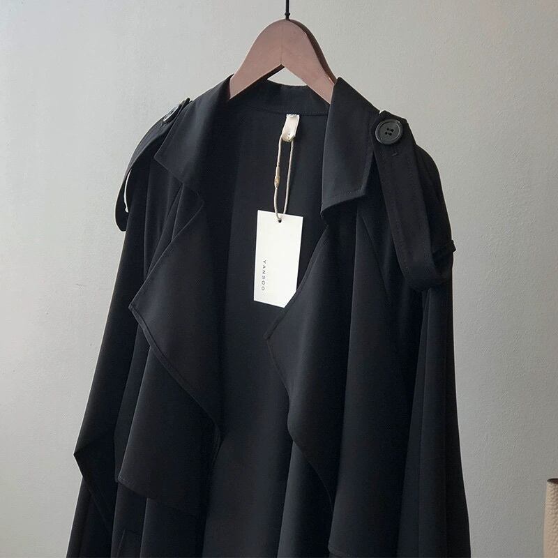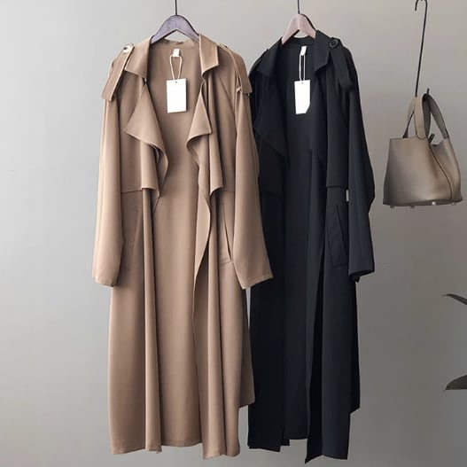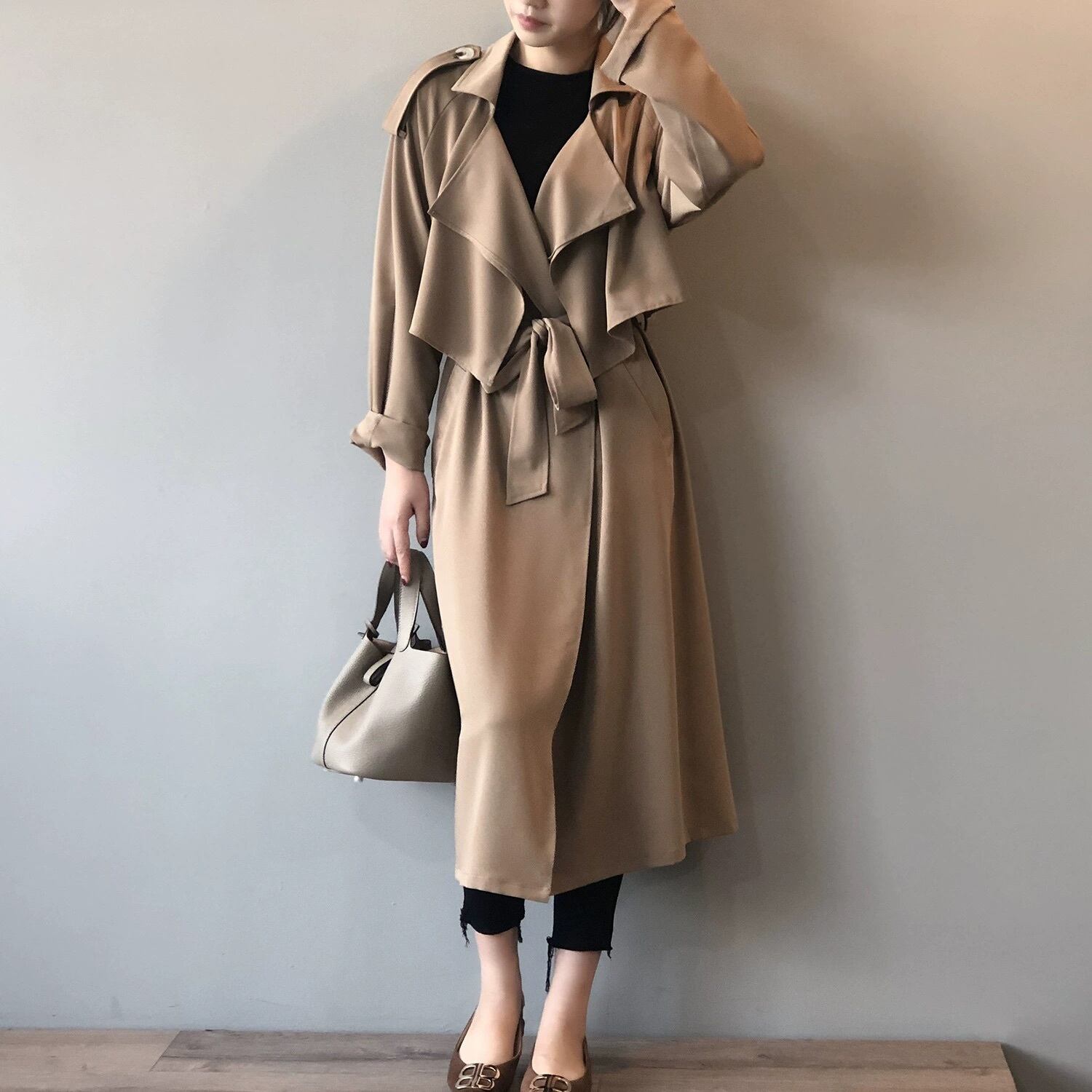 アウター コート ウインドブレーカー ロング丈 袖あり 長袖 襟付き ルーズ ストレート 前開き ポリエステル 薄手 大人可愛い きれいめ シンプル カジュアル 大人 上品 お洒落 かっこいい レトロ 大人可愛い 大人女子 こなれ感 クール モード系 エレガント モダン 主役級 存在感 とろみ感 抜け感 無地 秋 20代 30代 40代 レディース OL 通勤 デート お出かけ 女子会 お泊まり 休日 ホテル レストラン ショッピング 韓国系 オルチャン モテ トレンド 流行 M L ブラック カーキ
