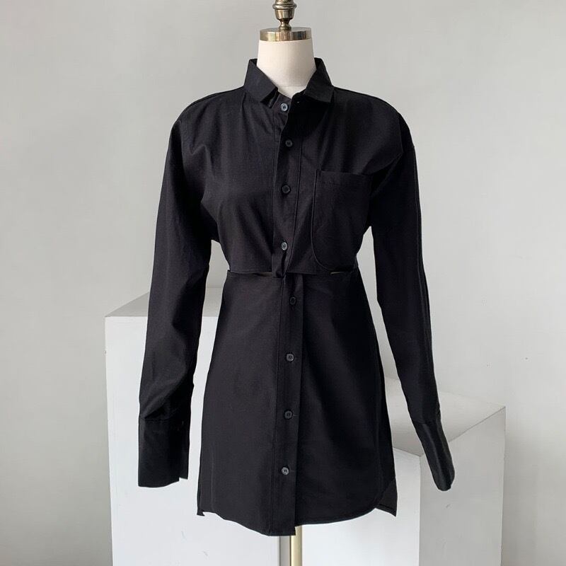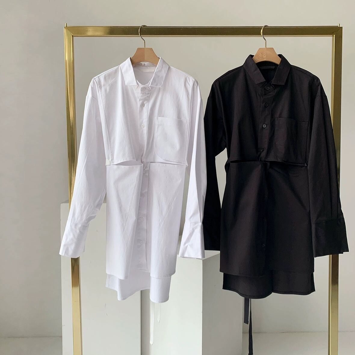 ワンピース シャツワンピース ショート丈 袖あり 長袖 襟付き ルーズ ポロカラー Aライン 前開き 薄手 大人可愛い きれいめ シンプル カジュアル 大人 上品 お洒落 かっこいい レトロ 大人可愛い 大人女子 こなれ感 クール モード系 エレガント モダン 主役級 存在感 とろみ感 抜け感 無地 秋 10代 20代 レディース デート お出かけ 女子会 お泊まり 休日 ホテル レストラン ショッピング 普段使い 韓国 韓国系 オルチャン モテ 美脚 脚長 トレンド 流行 ワンサイズ ホワイト ブラック