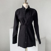 スタイリッシュなデザインのシャツワンピースです。ショッピングなどのお出かけにぴったりなアイテム。シンプルなデザインでありながら、ポロカラーや袖ありのディテールがさりげないお洒落さを演出します。また、Aラインのシルエットで脚長効果も期待できます。