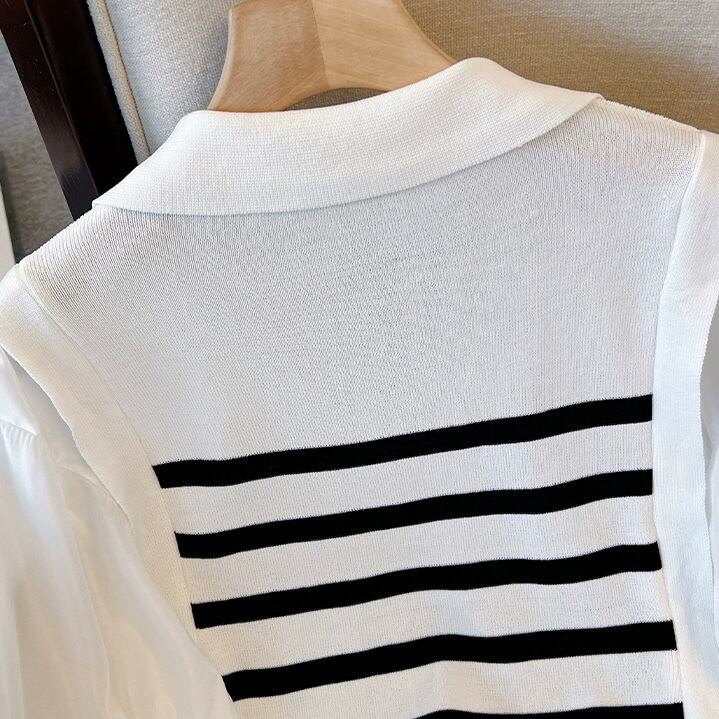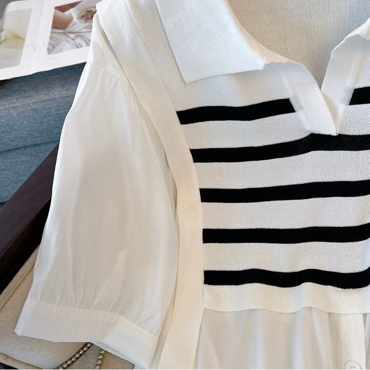 トップス シャツ 袖あり 半袖 襟付き ルーズ ポロカラー シフォン 切り替えデザイン プルオーバー 薄手 大人可愛い きれいめ シンプル カジュアル 大人 上品 お洒落 かっこいい レトロ 大人可愛い 大人女子 こなれ感 ラフ ラブリー キュート ガーリー 主役級 存在感 とろみ感 抜け感 ボーダー 夏 10代 20代 レディース デート お出かけ 女子会 お泊まり 休日 ショッピング 普段使い 韓国系 オルチャン コーデ モテ トレンド 流行 M L XL 2XL 3XL 4XL ホワイト ブラック