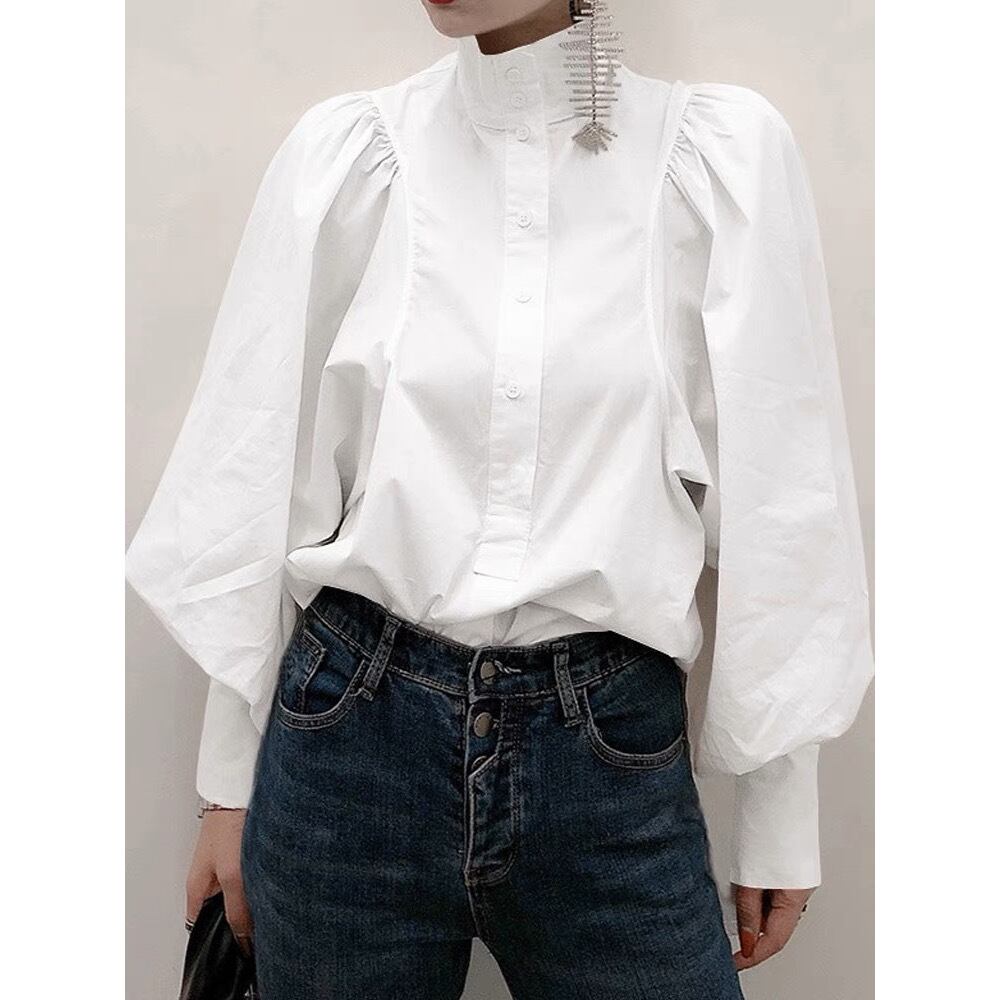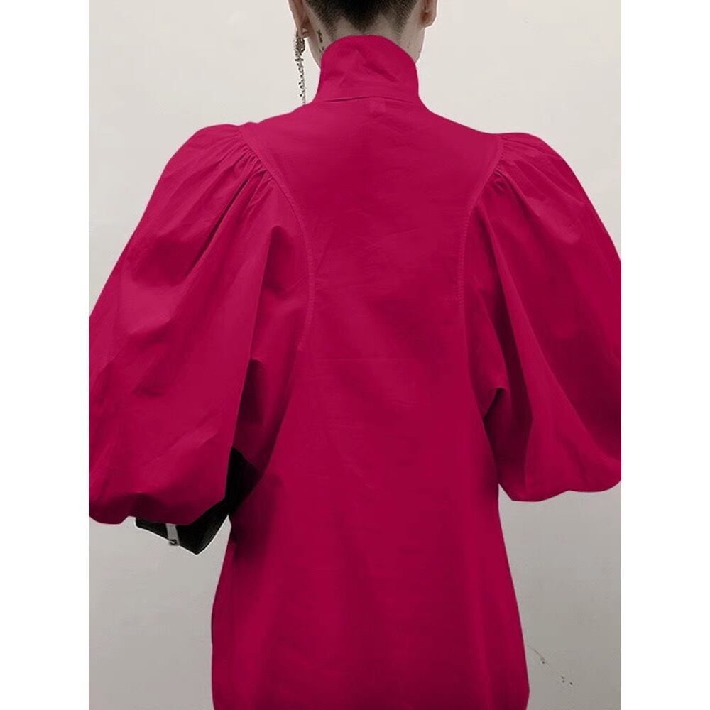 トップス シャツ パフスリーブ スタンドカラー 無地 シンプル 上品 おしゃれ お洒落 かっこいい 大人女子 マニッシュ モード系 エレガント モダン 春 秋 冬 入学式 入園式 卒業式 卒園式 謝恩会 10代 20代 30代 40代 レディース 女性用 デート お出かけ 女子会 休日 ショッピング 着回し 普段使い 韓国 韓国系 オルチャン ファッション コーデ スタイル インスタ映え 高見え ワンホン 色展開 白 ホワイト 黒 ブラック レッド サイズ S M L XL 2XL 3XL 大きいサイズ