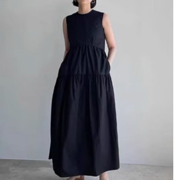 女性らしいシルエットと上品なデザインが魅力のノースリーブワンピースです。