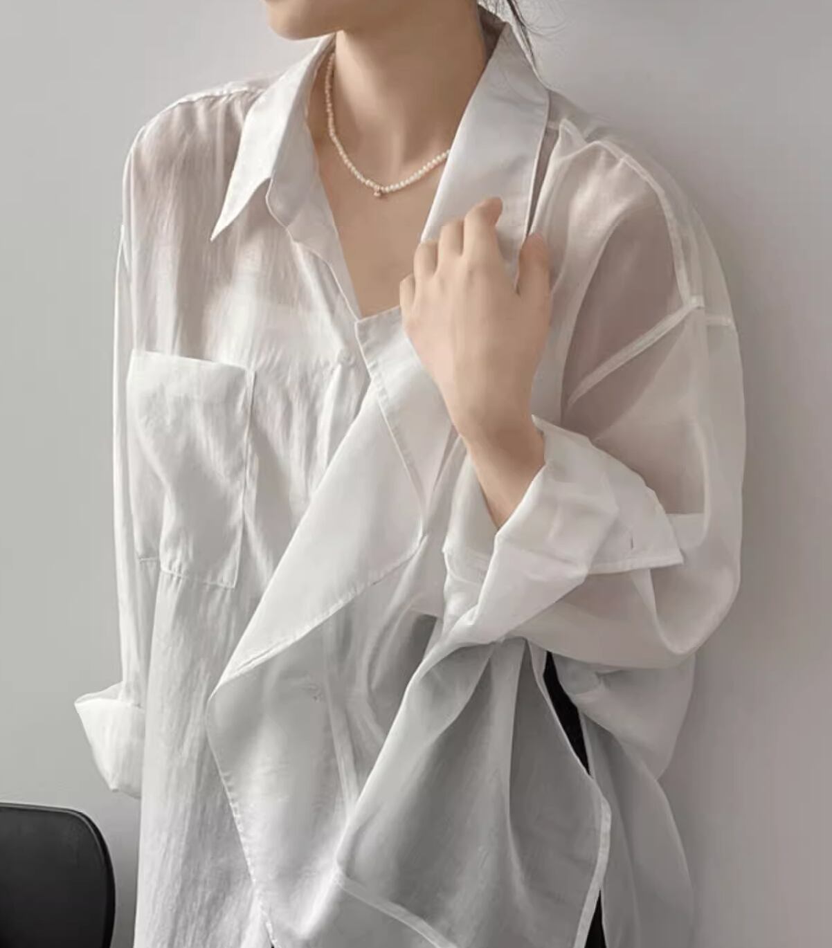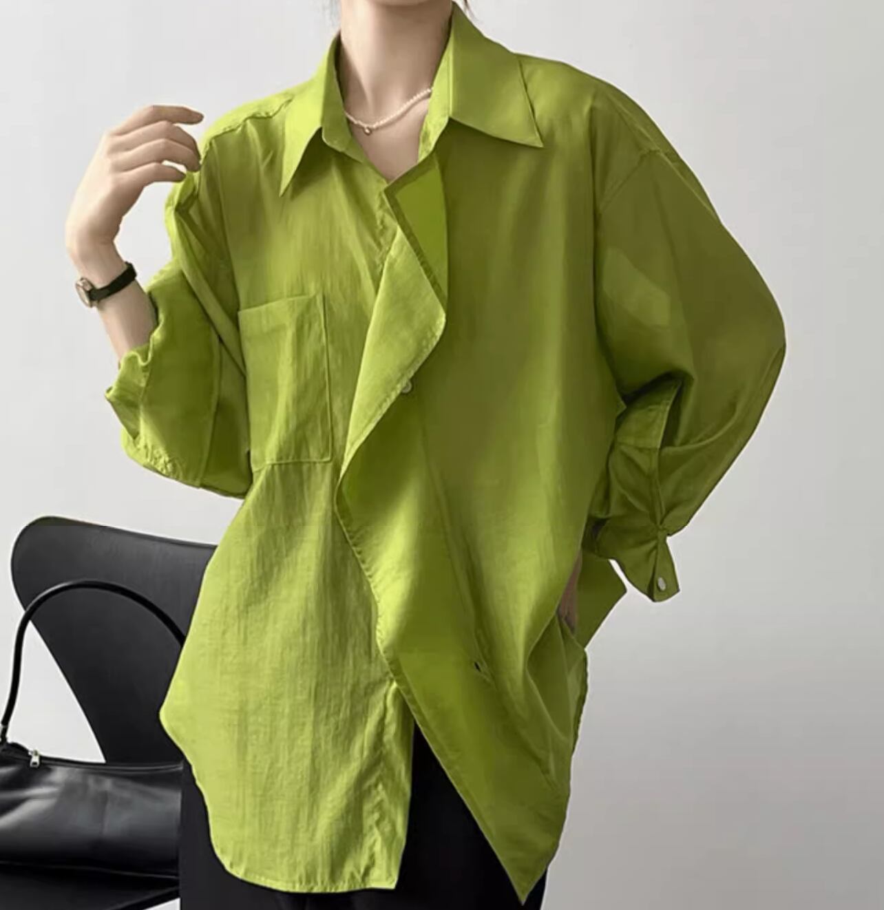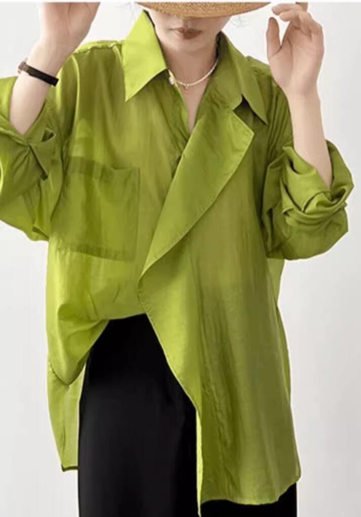 個性的 レディース トップス シャツ ブラウス 白シャツ 袖あり 長袖 襟なし セミフレア ワイド シフォン 前開き 透け感 シースルー 大人可愛い きれいめ シンプル 上品 かっこいい アジアン エスニック エキゾチック マニッシュ ボーイッシュ スポーティー とろみ感 抜け感 無地 春 夏 10代 20代 オフィス 通勤 通学 デート ホテル レストラン 着回し 普段使い 重ね着 ファッション 楽ちん モテ 体系カバー 定番 トレンド インスタ映え M L ゆったり ゆる 白 ホワイト 緑 グリーン
