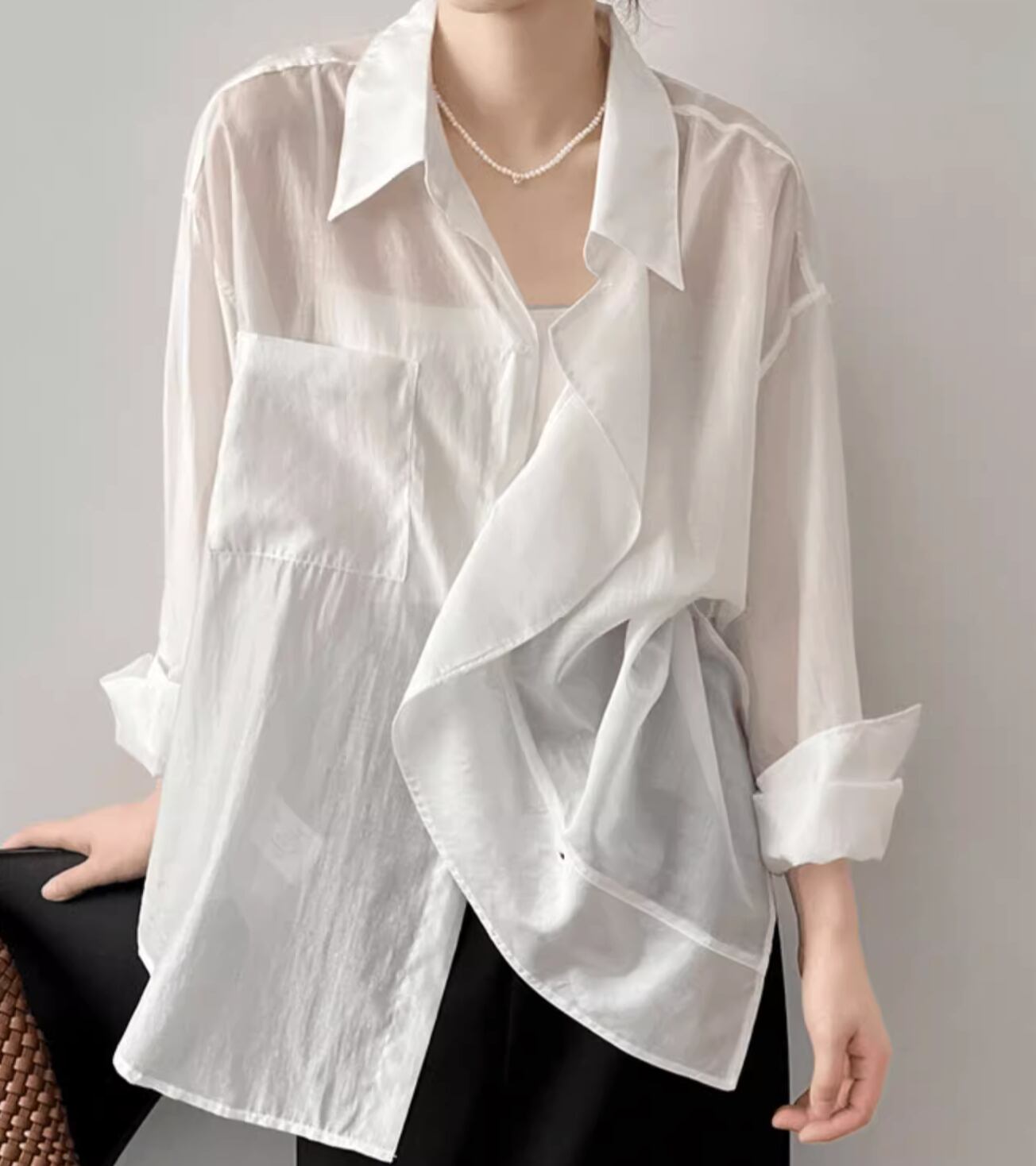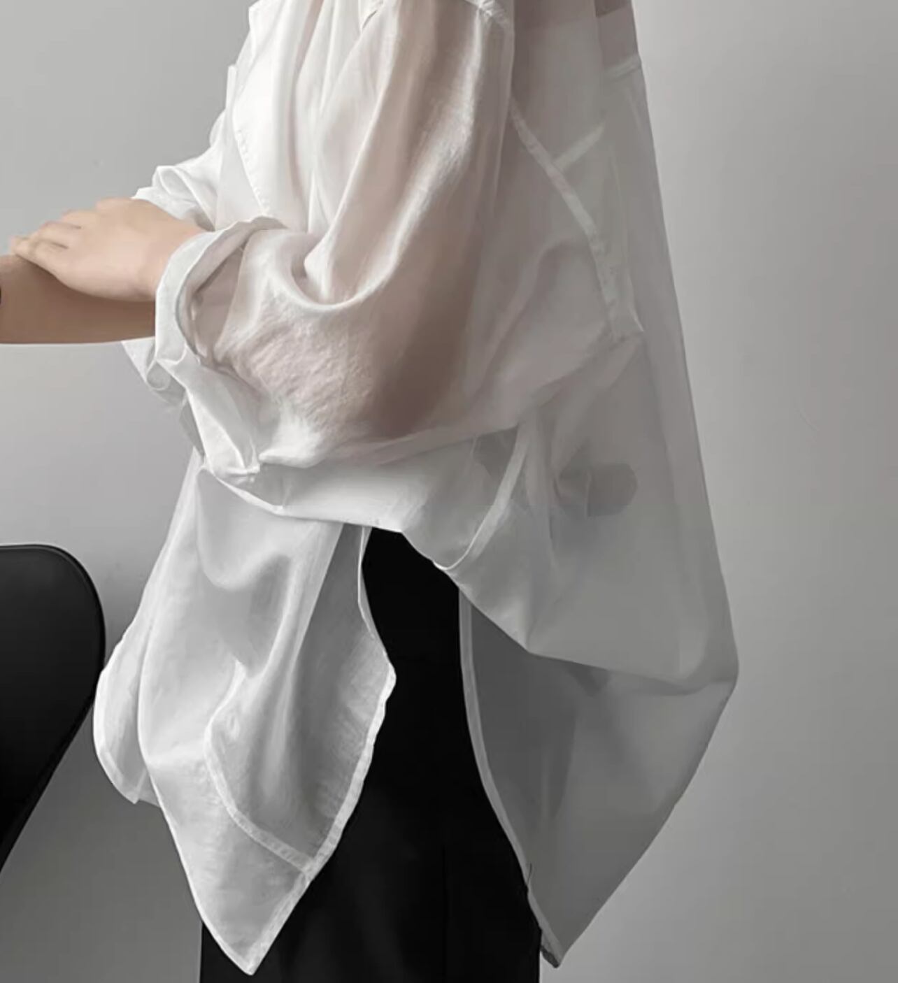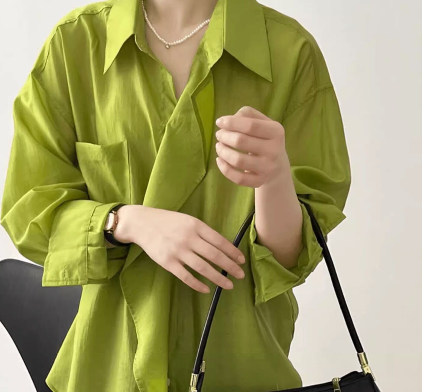 個性的 レディース トップス シャツ ブラウス 白シャツ 袖あり 長袖 襟なし セミフレア ワイド シフォン 前開き 透け感 シースルー 大人可愛い きれいめ シンプル 上品 かっこいい アジアン エスニック エキゾチック マニッシュ ボーイッシュ スポーティー とろみ感 抜け感 無地 春 夏 10代 20代 オフィス 通勤 通学 デート ホテル レストラン 着回し 普段使い 重ね着 ファッション 楽ちん モテ 体系カバー 定番 トレンド インスタ映え M L ゆったり ゆる 白 ホワイト 緑 グリーン
