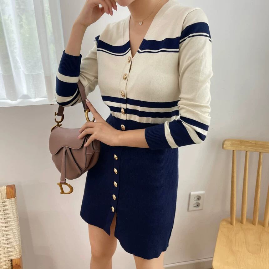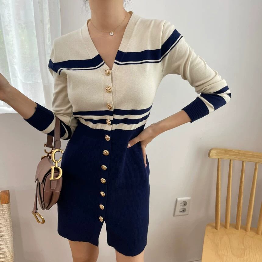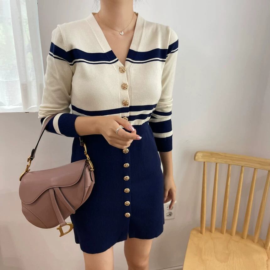 個性的 レトロ ワンピース ニットソー カーディガン ミニ ショート ショート丈 膝上 袖あり 長袖 Vネック 襟なし スリム タイト 細身 ウエストマーク スリット 前開き 伸縮性 かわいい 大人可愛い きれいめ シンプル カジュアル 大人 上品 おしゃれ お洒落 大人女子 セクシー エレガント 主役級 存在感 ボーダー ストライプ 春 秋 20代 30代 レディース ビジネス OL 通勤 学生 デート お出かけ パーティー イベント 着回し 普段使い 重ね着 美脚 脚長 インスタ映え フリーサイズ