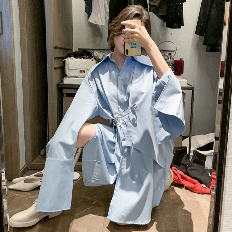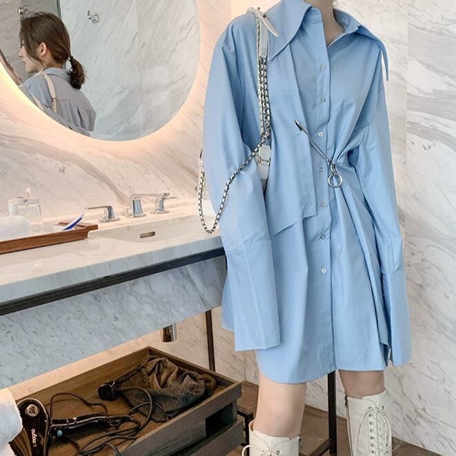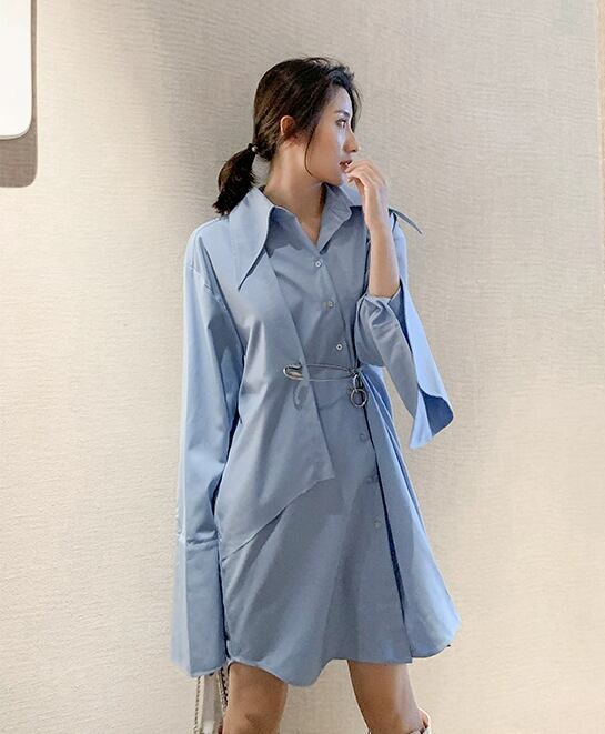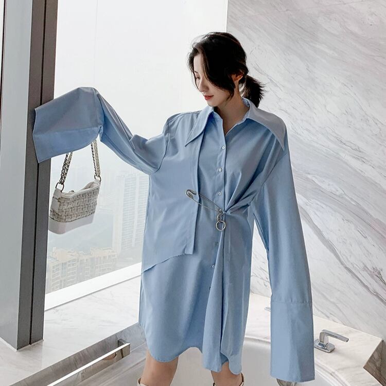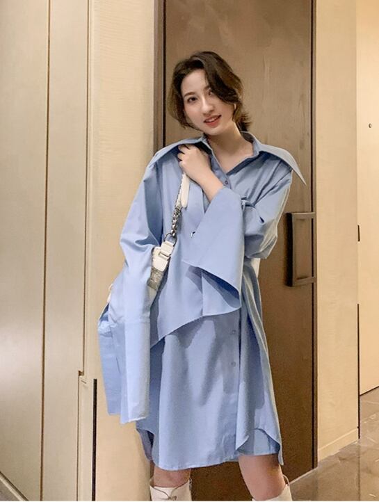 個性的 トップス ワンピース シャツ ブラウス シャツワンピース ショート ショート丈 膝上 袖あり 長袖 ボリューム袖 萌袖 Vネック 襟付き ビッグカラー 大きい襟 アシンメトリー 切り替えデザイン 前開き かわいい 大人可愛い きれいめ シンプル カジュアル 大人 上品 おしゃれ お洒落 こなれ感 ラフ 主役級 存在感 抜け感 無地 春 秋 10代 20代 30代 レディース 通勤 学生 通学 デート お出かけ イベント 旅行 着回し 普段使い インスタ映え S M L 青 ブルー ライトブルー