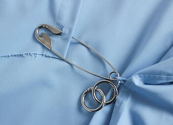 目を引く安全ピンが個性的で、シンプルなシャツワンピにエッジをきかせていますね。