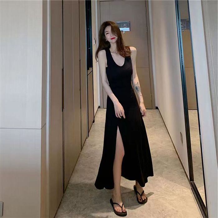 レディース ワンピース Uネック ロング丈 袖なし ノースリーブ 無地 サイドスリット かわいい 大人可愛い シンプル カジュアル おしゃれ こなれ感 ラフ 個性的 主役級 抜け感 無地 夏 OL 学生 デート お出かけ お泊まり パーティー イベント リゾート 旅行 海 プール レストラン 女子会 休日 バカンス ショッピング コンサート ライブ 合コン コンパ カフェ コーデ プレゼント 普段使い 着回し トレンド インスタ映え S M L XL 2XL 3XL 4XL 5XL ブラック