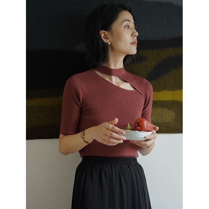トップス ニット カットアウト 袖あり 長袖 リブニット スリム 細身 プルオーバー 大人可愛い きれいめ シンプル カジュアル 大人 上品 お洒落 かっこいい レトロ 大人可愛い 大人女子 こなれ感 ラフ 個性的 クール モード系 モダン 主役級 存在感 抜け感 無地 秋 冬 10代 20代 30代 レディース デート お出かけ 女子会 お泊まり 休日 アウトドア 普段使い 韓国系 オルチャン モテ トレンド 流行 S M L レッド ブラック