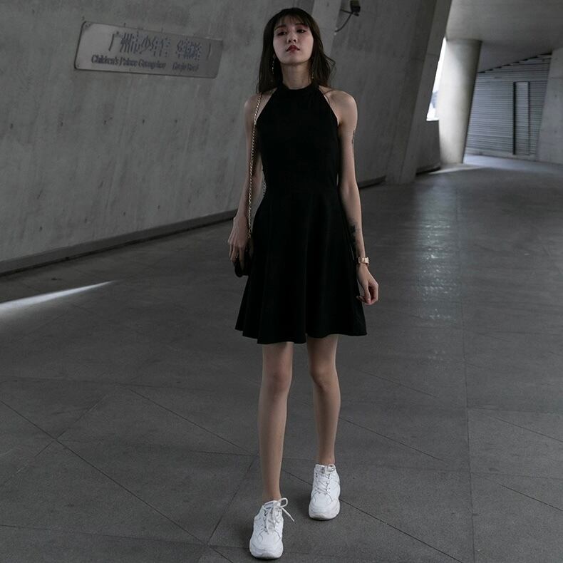ワンピース ショート丈 袖なし ノースリーブ 襟なし ホルターネック スリム 細身 Aライン ポケット プルオーバー 薄手 大人可愛い きれいめ シンプル カジュアル 大人 上品 お洒落 かっこいい レトロ 大人可愛い 大人女子 こなれ感 クール モード系 エレガント モダン 主役級 存在感 とろみ感 抜け感 無地 夏 10代 20代 レディース デート お出かけ 女子会 お泊まり 旅行 ショッピング 普段使い 韓国系 オルチャン ファッション コーデ モテ トレンド 流行 XS S M L ブラック