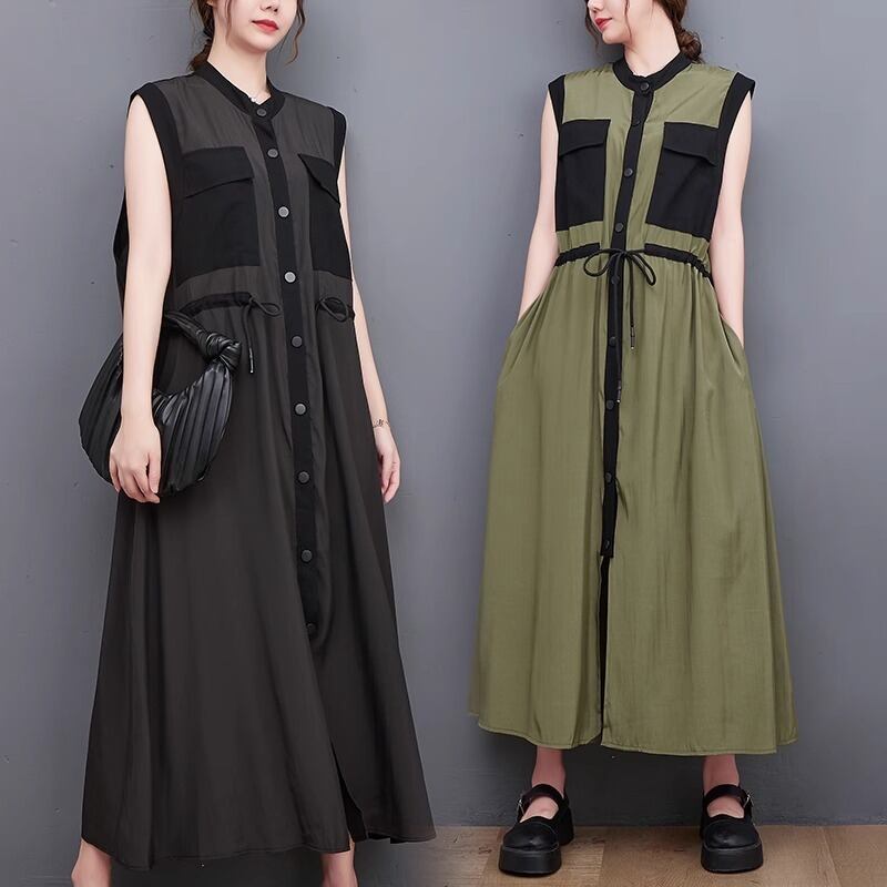 クラシックで上品なスタイルを叶えるワンピースロングスカートが登場しました。ラウンドネックとノースリーブのデザインで、夏の涼しいシーズンにぴったりのアイテムです。ウエストリボンとフレアなAラインシルエットが女性らしさを引き立て、上品かつ可愛らしい印象を演出します。さらにポケット付きで実用性も兼ね備えました