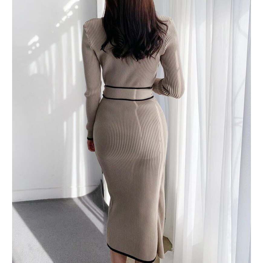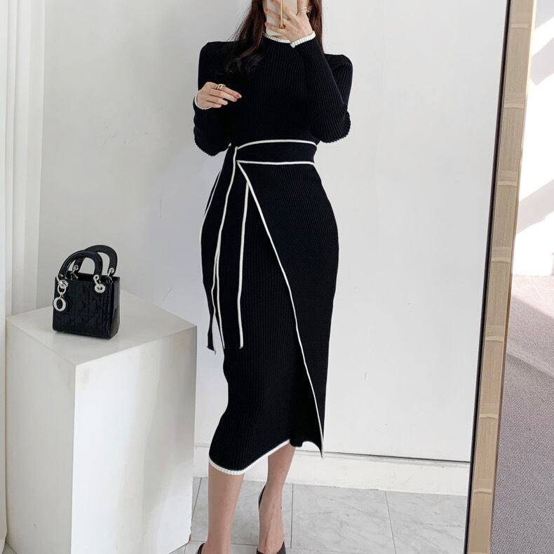 ニットワンピ ワンピース ミモレ丈 ロング丈 長袖 ハイネック スリム Iライン ベルト ウエストマーク ハイウエスト ニット 無地 大人可愛い きれいめ シンプル 大人 上品 おしゃれ お洒落 抜け感 秋 冬 10代 20代 30代 40代 レディース 女性用 デート お出かけ 女子会 休日 レストラン ショッピング 公園 普段使い 韓国 韓国系 オルチャン ファッション コーデ スタイル 暖かい モテ 美脚 インスタ映え あざと ワンホン 色展開 黒 ブラック カーキ 秋カラー サイズ フリーサイズ