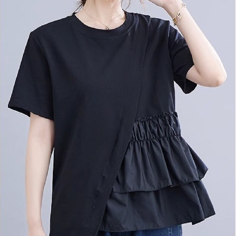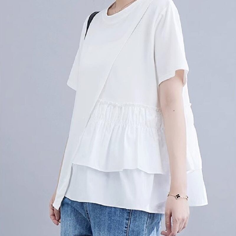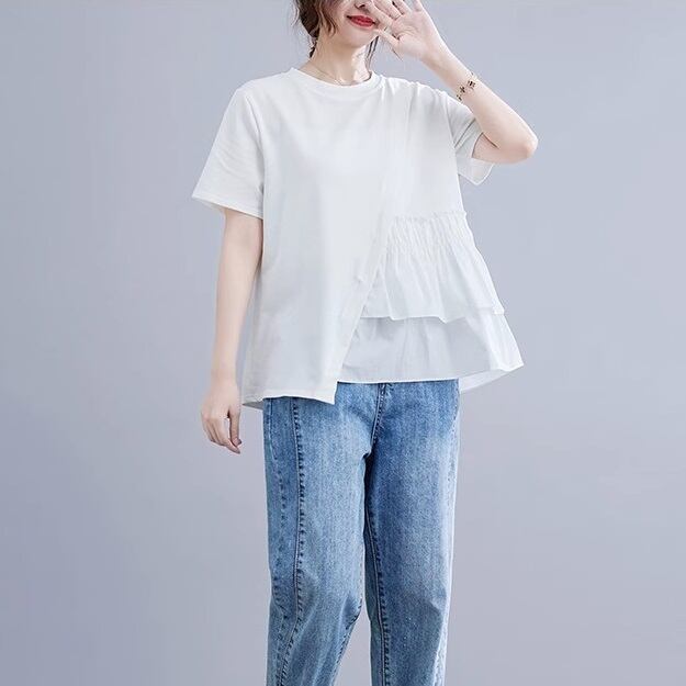 レディース トップス レギュラー 半袖 ラウンドネック ストレート ギャザー かわいい 大人可愛い きれいめ カジュアル おしゃれ こなれ感 ラフ ルーズ 個性的 クール 主役級 存在感 無地 夏 OL 学生 デート お出かけ お泊まり パーティー イベント リゾート 旅行 レストラン ビーチ 女子会 休日 バカンス ホテル ガーデン ショッピング ライブ お花見 合コン コンパ カフェ コーデ 楽ちん プレゼント 体型カバー 普段使い 着回し 清楚 流行 ゆったり フリーサイズ ホワイト ブラック
