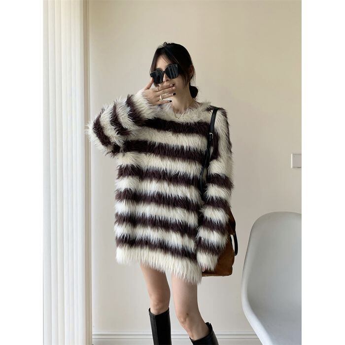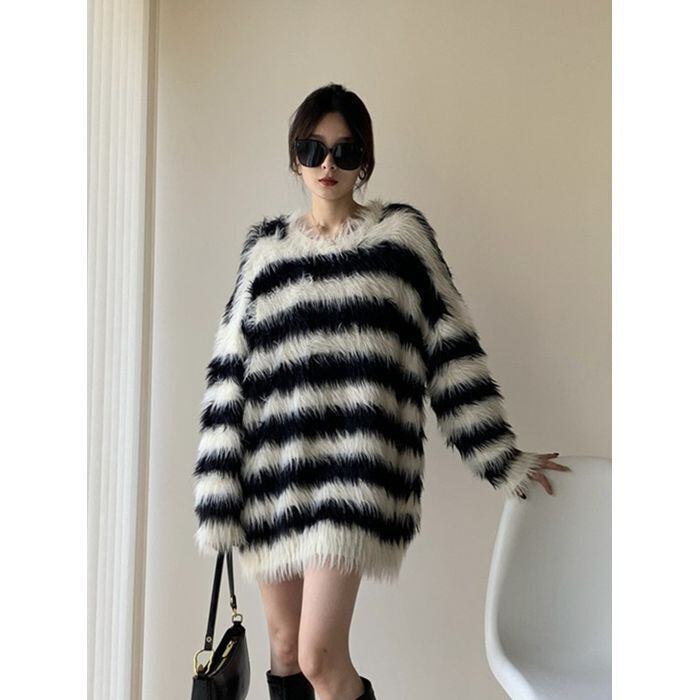 ワンピース ショート丈 ボーダー ストライプ 袖あり 長袖 ラウンドネック 襟なし ルーズ Aライン ニット フリンジ 大人可愛い きれいめ シンプル カジュアル 大人 上品 お洒落 かっこいい レトロ 大人可愛い 大人女子 こなれ感 ラフ ラブリー キュート ガーリー 主役級 存在感 抜け感 春 10代 20代 レディース デート お出かけ 女子会 お泊まり アウトドア ショッピング 普段使い 韓国系 オルチャン ファッション スタイル トレンド 流行 S M L XL 2XL