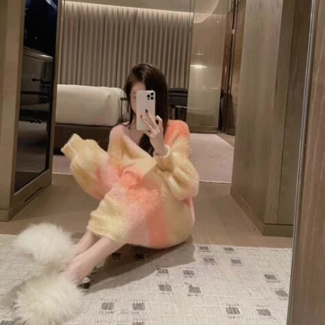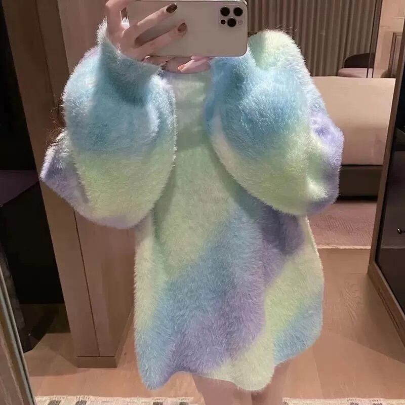 トップス セーター ミドル丈 袖あり 長袖 ラウンドネック 襟なし ルーズ ストレート もこもこ プルオーバー 綿 厚手 コットン 大人可愛い きれいめ シンプル カジュアル 大人 上品 お洒落 かっこいい レトロ 大人可愛い 大人女子 こなれ感 ラフ ラブリー キュート ガーリー 主役級 存在感 とろみ感 抜け感 グラデーション 冬 10代 20代 30代 レディース デート お出かけ 女子会 お泊まり 普段使い 韓国 オルチャン 楽ちん モテ トレンド 流行 S M L XL 2XL ブルー オレンジ