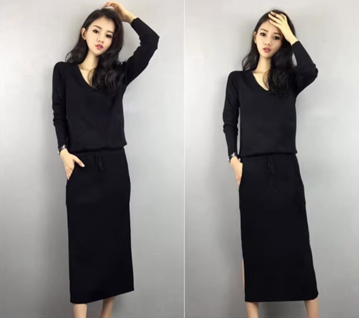 レディース ニットワンピース ワンピース ニットソー ワンピドレス ミモレ ミモレ丈 ロング ロング丈 袖あり 長袖 Vネック スリム タイト かわいい 大人可愛い きれいめ シンプル 大人 上品 おしゃれ お洒落 大人女子 こなれ感 セクシー エレガント 主役級 存在感 無地 秋 冬 10代 20代 女性用 オフィス ビジネス OL お出かけ 女子会 着回し 普段使い ファッション スタイル 楽ちん インスタ映え M L XL 2XL 3XL 大きい 大きめ ビッグサイズ 黒 ブラック 灰色 グレー