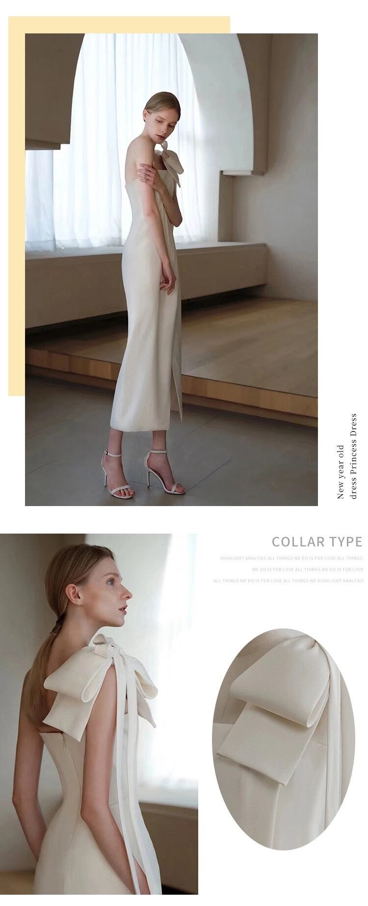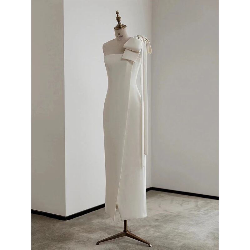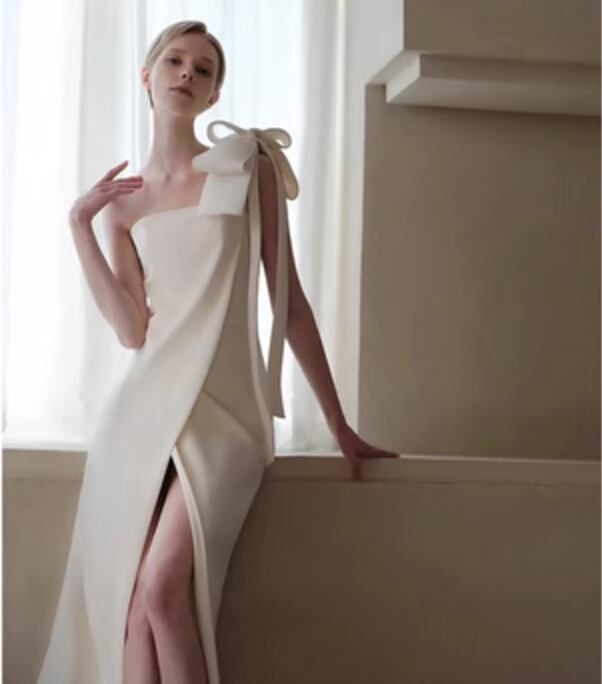 ワンショルダースタイルは女性らしさを引き立てつつ、きれいな女性らしい首元を演出してくれます。