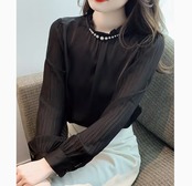 個性的で可愛らしいレディーストップスです。透け感のあるセミフレアシルエットが可愛らしさと上品さを演出します。カジュアルからフォーマルまで幅広いコーディネートに対応します。