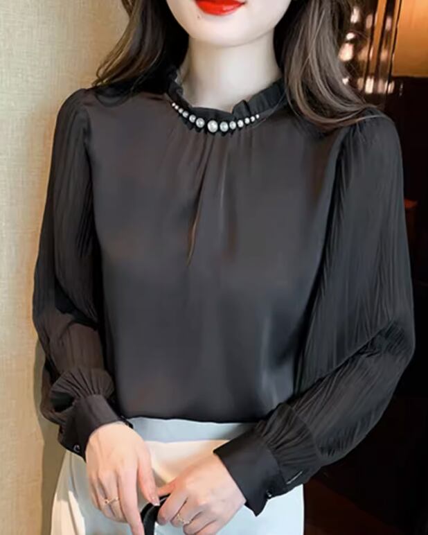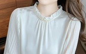 個性的 レディース トップス シャツ ブラウス カットソー プルオーバー 白トップス 袖あり 長袖 萌袖 襟なし セミフレア 細身 ワイド チュール 透け感 シースルー かわいい 大人可愛い きれいめ 大人 上品 おしゃれ お洒落 こなれ感 ガーリー セクシー エレガント 主役級 存在感 フォーマル とろみ感 抜け感 無地 春 夏 10代 20代 30代 女性用 オフィス ビジネス OL 学生 通学 通勤 インスタ デート お出かけ 女子会 お泊まり 普段使い S M L XL 白 ホワイト 黒 ブラック