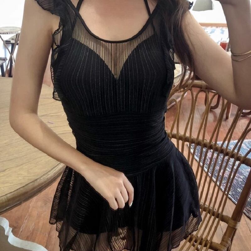 水着 レディース ワンピース スカパン ホルターネック パッド付き レース フリル バックシャン シースルー かわいい 大人可愛い きれいめ シンプル カジュアル 華やか 大人っぽい おしゃれ お洒落 主役級 存在感 ラブリー キュート 個性的 モード系 スタイリッシュ モダン マニッシュ エキゾチック アジアン セクシー フェミニン リゾート 旅行 温泉 プール 夏 海 美脚 脚長 着痩せ スタイルアップ 高見え 格上げ モテ インスタ映え こなれ感 2XL S M L XL ブラック