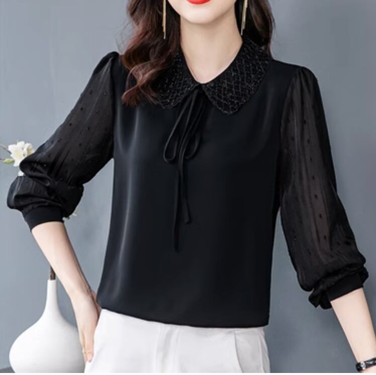 レディース トップス シャツ ブラウス 袖あり 長袖 萌袖 襟付き セミフレア レース チュール シフォン リボン 透け感 シースルー かわいい 大人可愛い きれいめ 大人 上品 おしゃれ お洒落 こなれ感 エレガント モダン フォーマル 無地 ドット柄 水玉 春 夏 オールシーズン シーズンレス 謝恩会 二次会 20代 30代 ビジネス 学生 通学 デート お出かけ パーティー イベント ホテル 普段使い モテ 主役級 個性 体系カバー インスタ映え M L XL 2XL 3XL 4XL 黒 ブラック