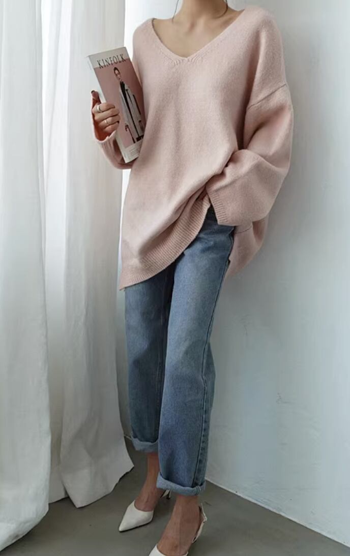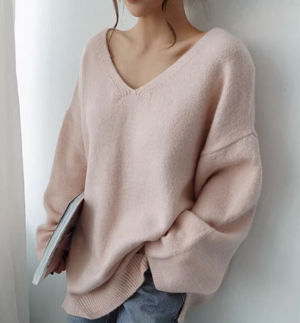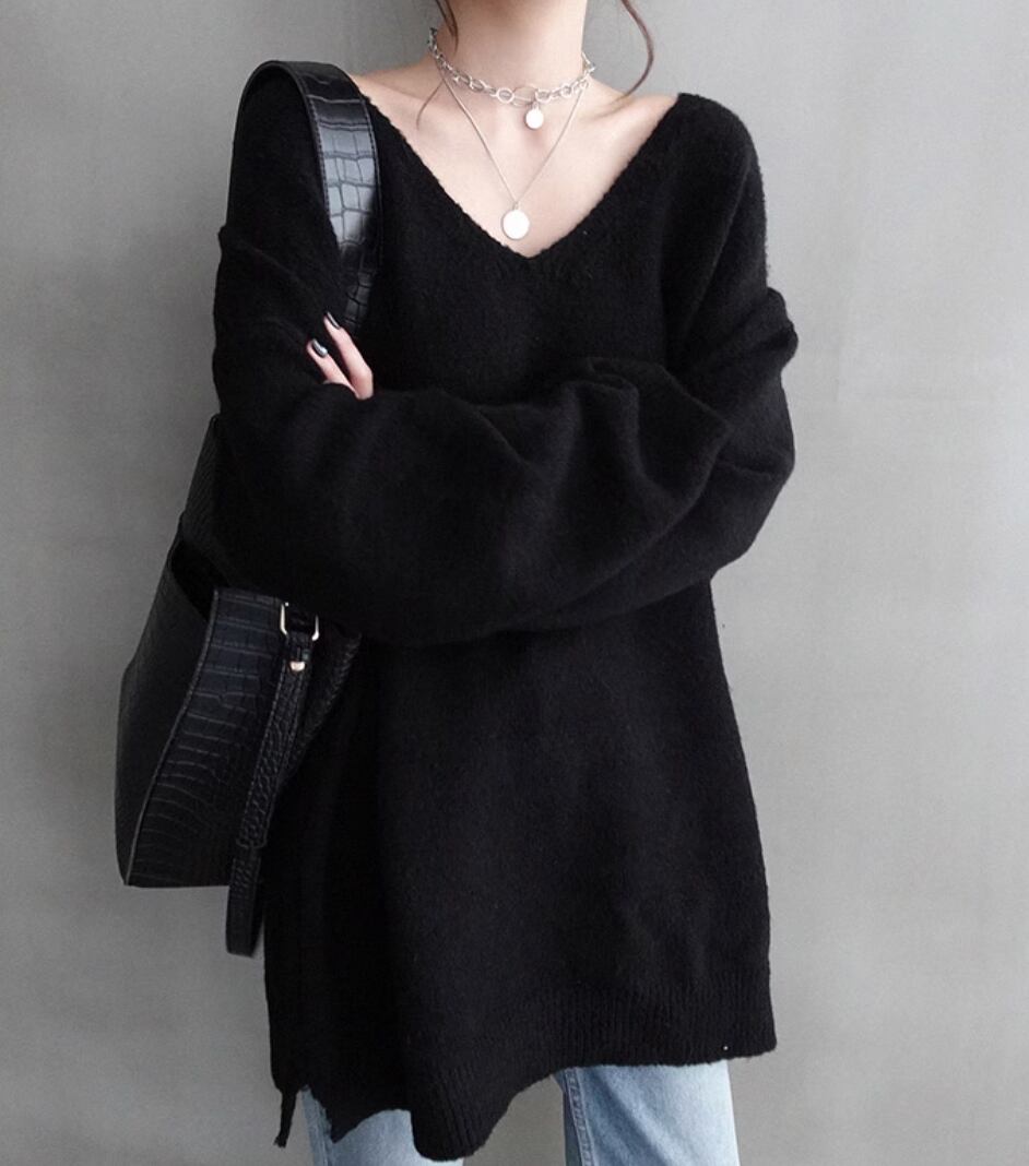 あなたの個性を引き立てるレディースニットトップスです。深いVネックとゆったりしたデザインが女性らしい優しい印象を与えます。大きいサイズ展開と豊富なカラーバリエーションです。