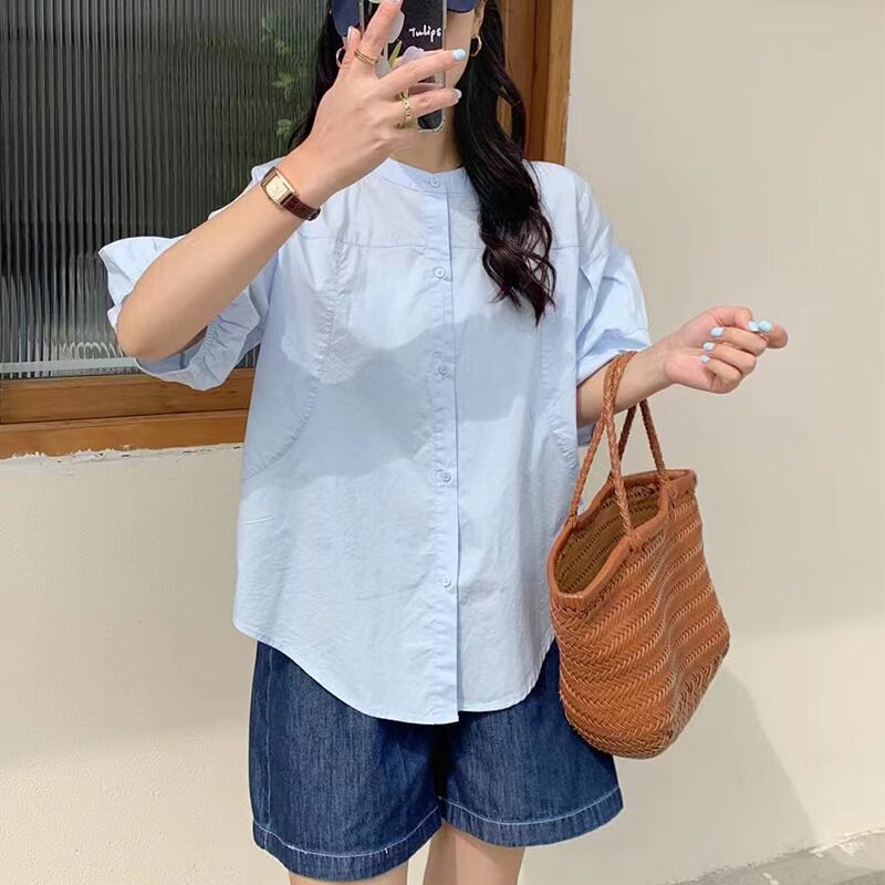 トップス シャツ レギュラー丈 袖あり 半袖 ラウンドネック 襟なし ルーズ 前開き 薄手 大人可愛い きれいめ シンプル カジュアル 大人 上品 お洒落 かっこいい レトロ 大人可愛い 大人女子 こなれ感 ラフ クール モード系 エレガント モダン 主役級 存在感 とろみ感 抜け感 無地 夏 10代 20代 30代 40代 レディース OL 通勤 デート お出かけ 女子会 お泊まり 休日 普段使い 韓国系 オルチャン コーデ 楽ちん トレンド 流行 ワンサイズ ライトブルー ホワイト イエロー ピンク