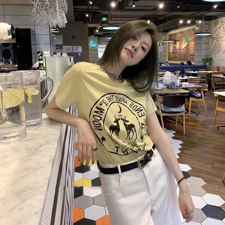 トップス Tシャツ レギュラー丈 袖あり 半袖 ラウンドネック 襟なし ルーズ プルオーバー 薄手 大人可愛い きれいめ シンプル カジュアル 大人 上品 お洒落 かっこいい レトロ 大人可愛い 大人女子 こなれ感 ラフ ボーイッシュ スポーティー ラブリー キュート 主役級 存在感 とろみ感 抜け感 プリント 夏 10代 20代 30代 レディース デート お出かけ 女子会 お泊まり 休日 アウトドア 旅行 ショッピング 普段使い 韓国系 オルチャン コーデ 楽ちん トレンド 流行 S M L イエロー