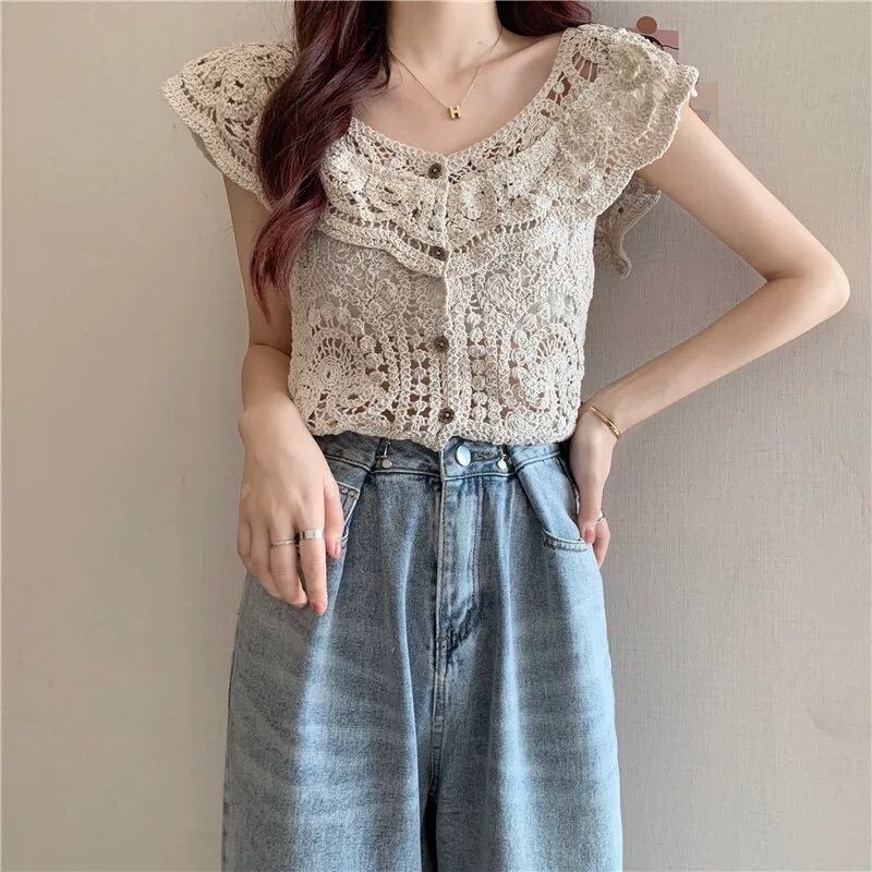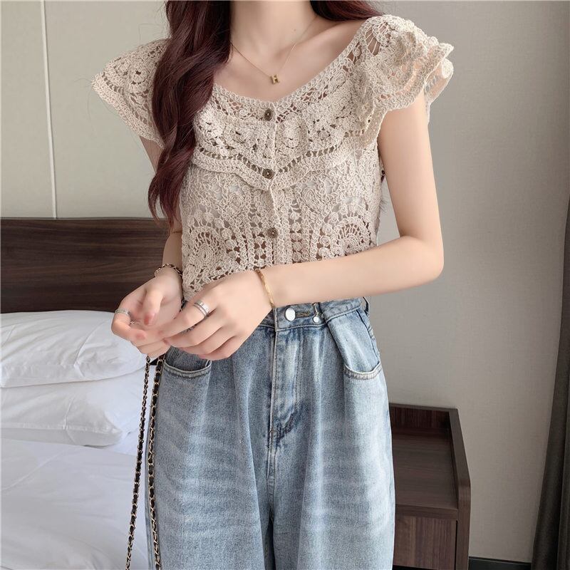 トップス シャツ ショート丈 袖なし ノースリーブ ラウンドネック スリム 細身 レース 刺繍 前開き 薄手 大人可愛い きれいめ シンプル カジュアル 大人 上品 お洒落 かっこいい レトロ 大人可愛い 大人女子 こなれ感 ラフ ラブリー キュート ガーリー 主役級 存在感 とろみ感 抜け感 夏 10代 20代 30代 レディース デート お出かけ 女子会 お泊まり 休日 アウトドア 旅行 ショッピング 普段使い 韓国 韓国系 オルチャン コーデ スタイル トレンド 流行 S M L ホワイト ベージュ