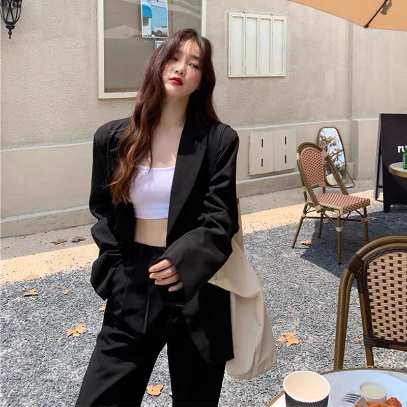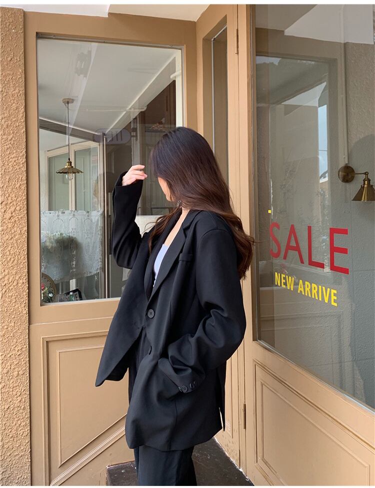大人可愛い、きれいめのスーツセットアップ。テーラードジャケットとワイドパンツの上品な組み合わせで、どんなシーンにもマッチします。シンプルなデザインでありながら、さまざまなスタイルにアレンジできる優れものです。