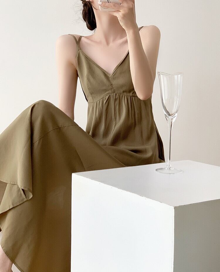レディース ワンピース ロングスカート ロング キャミソール Vネック Aライン スリット かわいい 大人可愛い きれいめ シンプル カジュアル 上品 おしゃれ アジアン エスニック こなれ感 ガーリー クール モード系 ラブリー キュート ベーシック セクシー 無地 夏 デート お出かけ パーティー イベント リゾート 旅行 海 レストラン ビーチ 女子会 休日 ホテル ショッピング 韓国 コーデ 楽ちん 体型カバー 普段使い 着回し モテ トレンド 流行 インスタ映え S M L XL カーキ