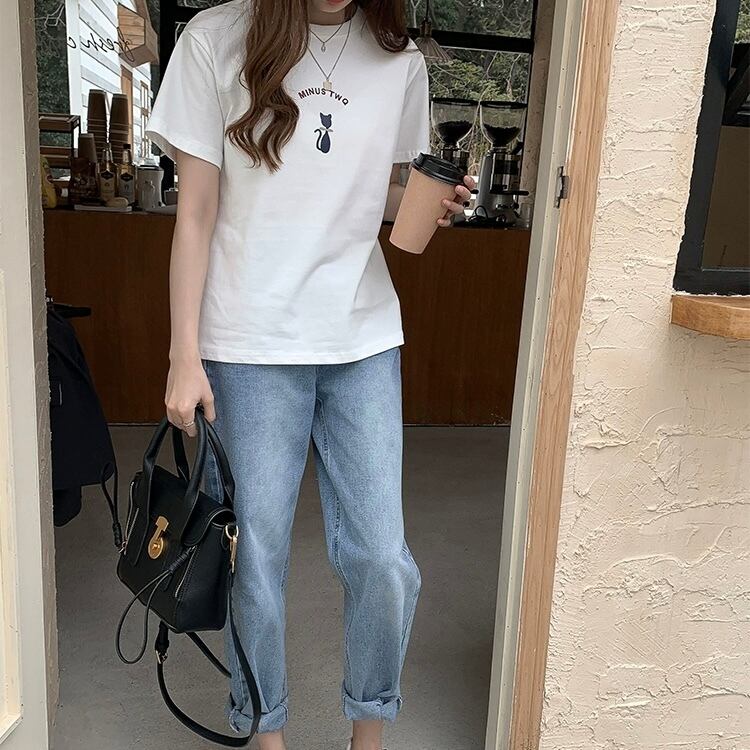 トップス Tシャツ レギュラー丈 袖あり 半袖 ラウンドネック スリム 細身 プルオーバー 綿 ポリエステル 薄手 コットン 大人可愛い きれいめ シンプル カジュアル 大人 上品 お洒落 かっこいい レトロ 大人可愛い 大人女子 こなれ感 ラフ ボーイッシュ スポーティー 抜け感 プリント 夏 10代 20代 30代 40代 レディース OL 通勤 学生 通学 デート お出かけ 休日 アウトドア 普段使い 韓国系 オルチャン トレンド 流行 M L XL 2XL グレーブルー ホワイト ブラック グレー