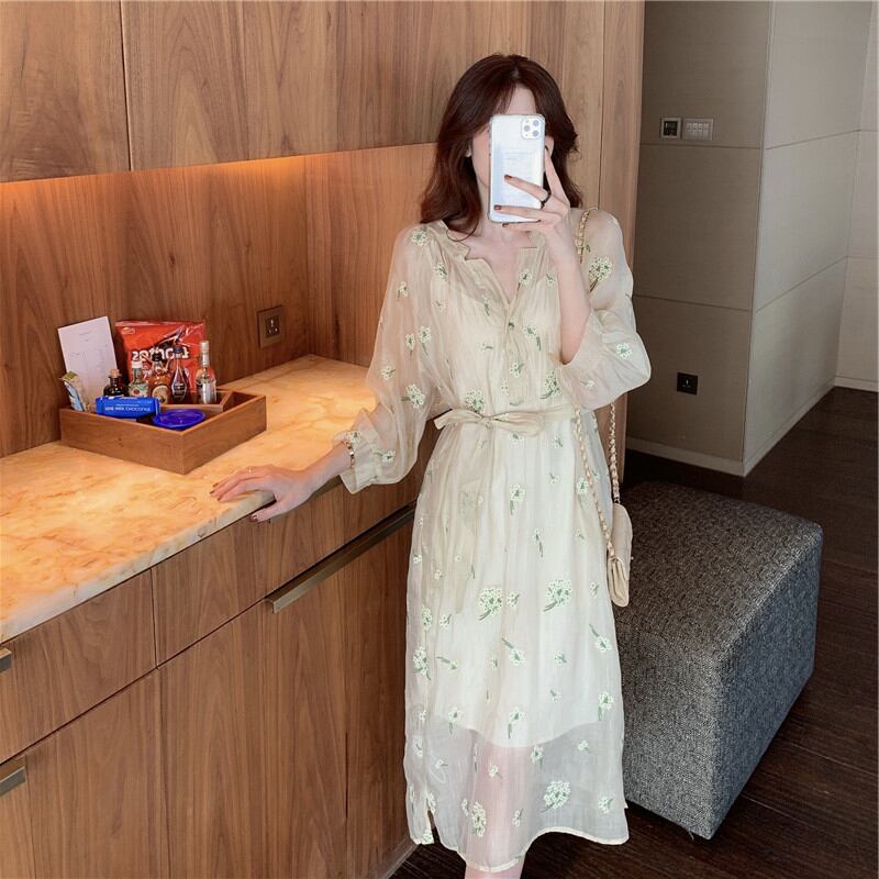トレンド感溢れるレディースワンピース。2点セットには、キャミソールと7分袖のパフスリーブのワンピースがセットになっており、VネックとスリムなAラインが女性らしさを引き立て、ウエストマークでメリハリを作ることができます。フェミニンなシフォンとふんわりとしたフリルが、上品さを演出。