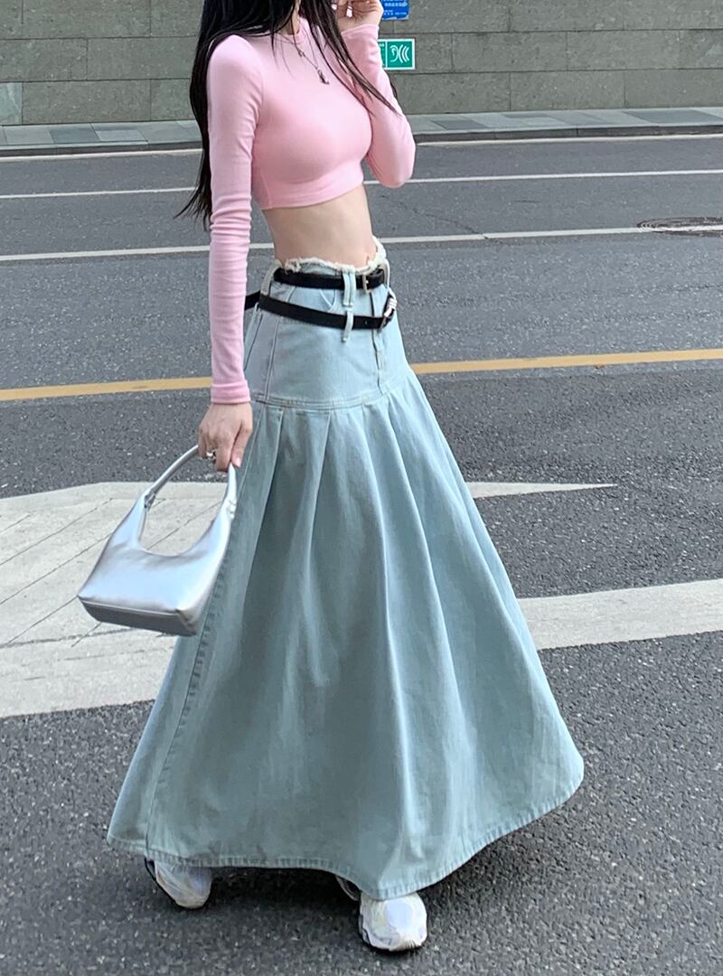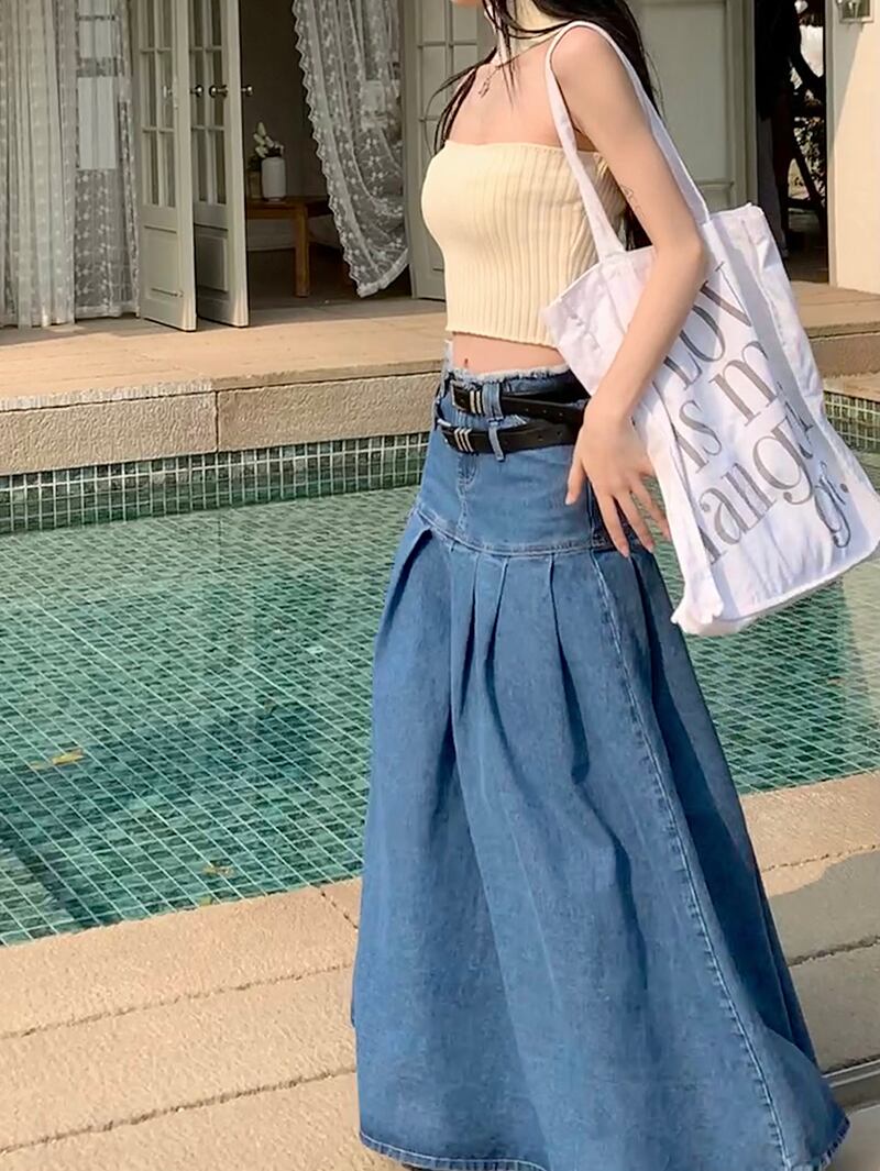 レディース スカート ロングスカート ロング Aライン ファスナー ポケット ハイウエスト ウエストマーク デニム かわいい 大人可愛い きれいめ シンプル カジュアル 上品 おしゃれ レトロ ガーリー ルーズ 個性的 ラブリー キュート カントリー 無地 オールシーズン ママ 通勤 学生 学校 通学 デート お出かけ 旅行 レストラン 女子会 ショッピング コンサート 韓国 コーデ 楽ちん 体型カバー 普段使い 着回し モテ トレンド 流行 インスタ映え S M L ゆったり ブルー ライトブルー