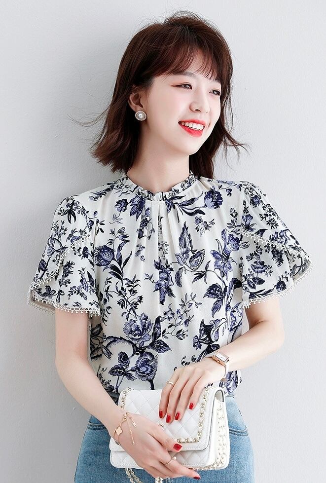 甘さとエレガンスが魅力の半袖シャツです。シフォン素材で軽やかな着心地で、袖ありのデザインが腕まわりを華奢に見せてくれます。スタンドカラーが上品で、スリムなシルエットが女性らしさを引き立てます。大人可愛い花柄デザインで季節感も演出します。ホテルやレストランでのデートや女子会、お出かけにもぴったり。モード系やエレガントなスタイルがお好きな方にもおすすめです。