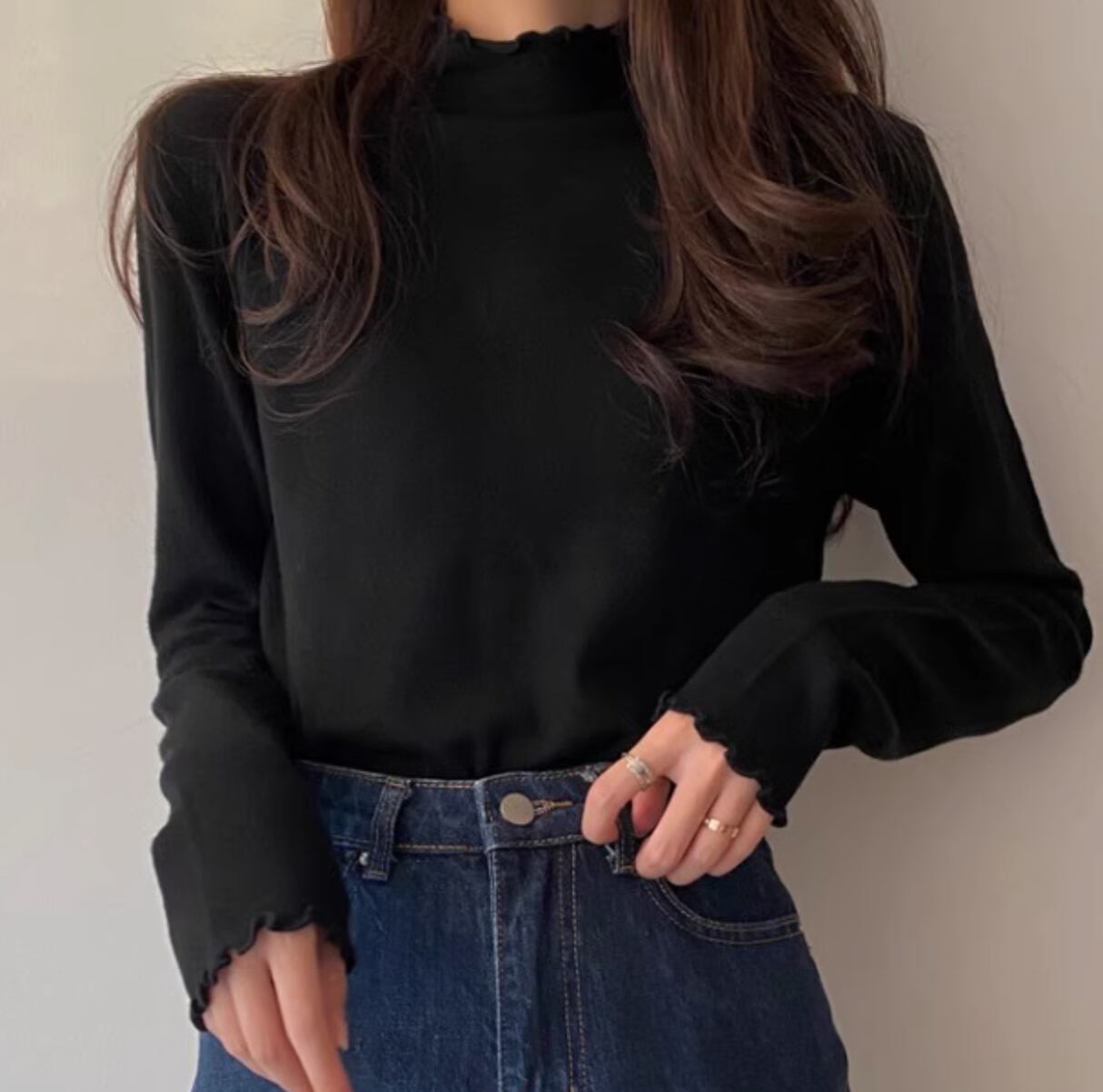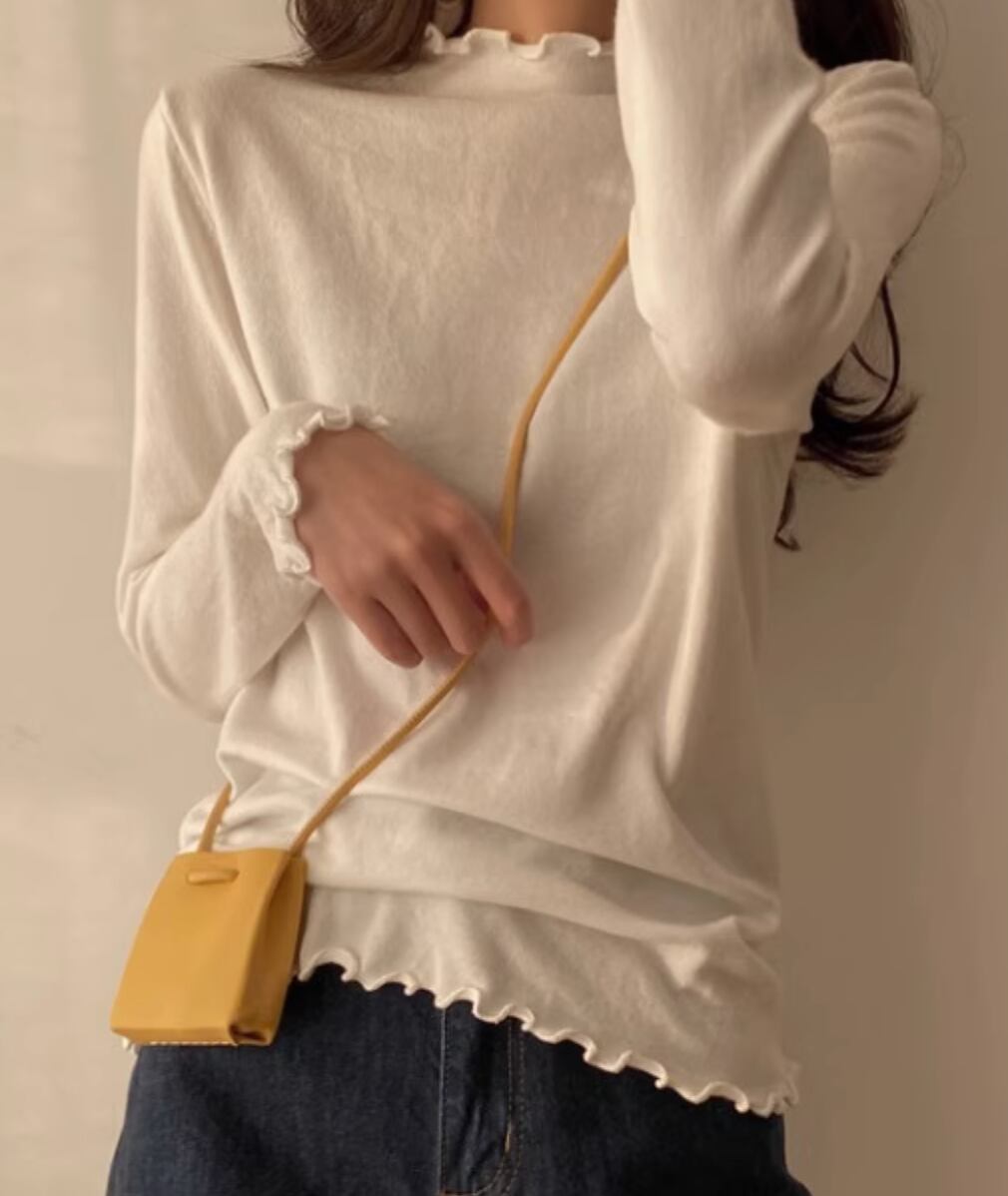 シンプルながら,袖や首元に可愛らしいデザインを兼ね揃えたトップスです。