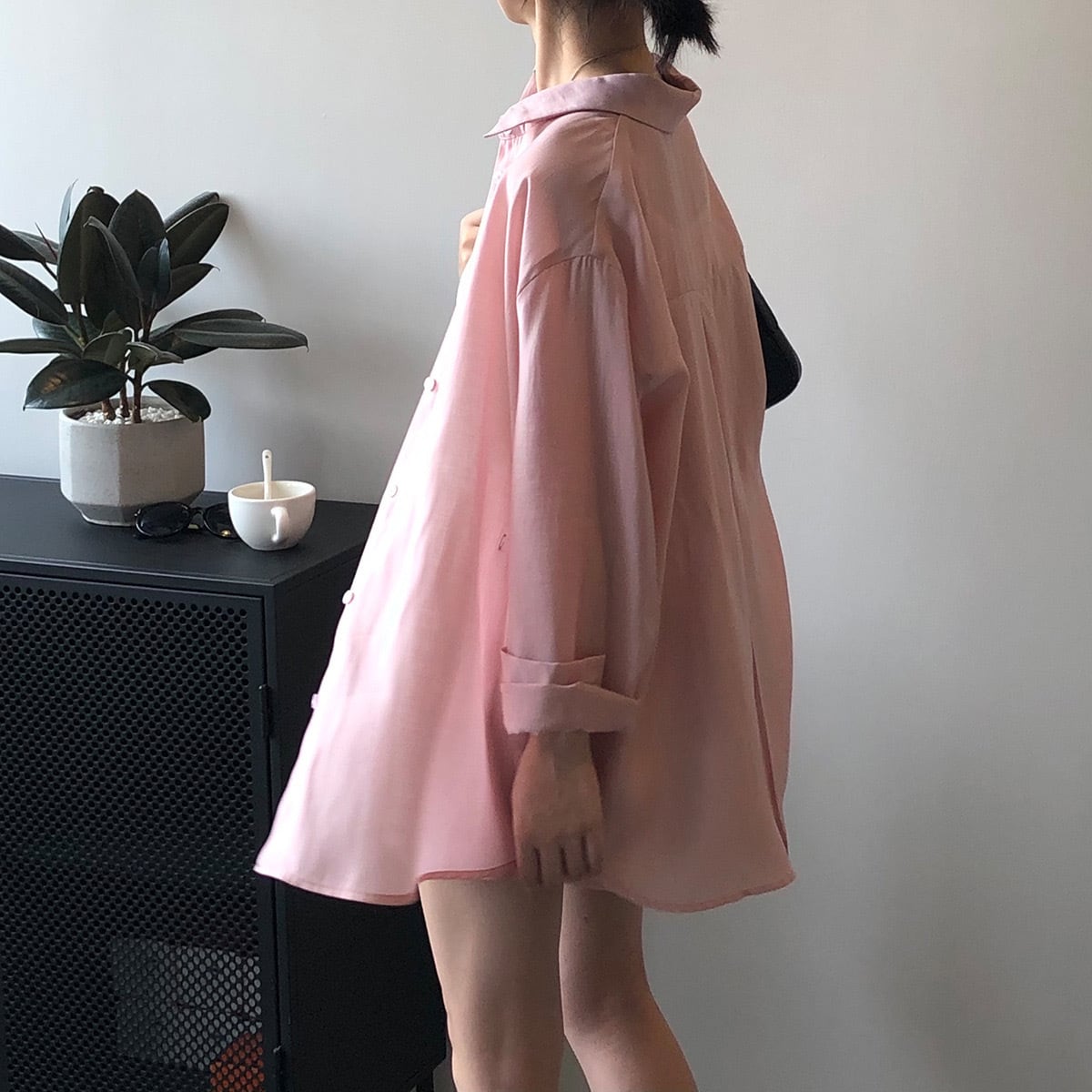 透け感のある薄手な生地に、ゆったりとしたルーズ感がスタイルにこなれ感をプラスしてくれます。