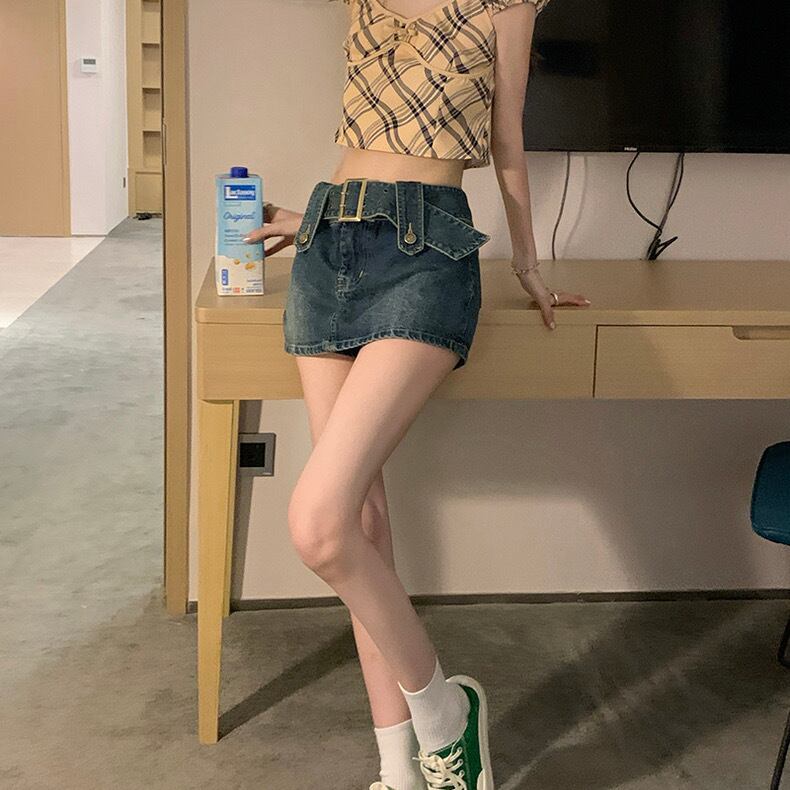 キュロット スカパン スカート ボトムス パンツ ズボン デニムパンツ ショートパンツ デニムスカート ミニ ショート ベルト ハイウエスト デニム 無地 カジュアル おしゃれ お洒落 かっこいい レトロ クール セクシー アメカジ 春 夏 秋 冬 オールシーズン 10代 20代 30代 レディース 女性用 デート お出かけ 女子会 休日 ショッピング 公園 着回し 普段使い 韓国 韓国系 オルチャン ファッション コーデ スタイル 美脚 脚長 脚細見え デイリー 青 ブルー サイズ展開 S M L XL