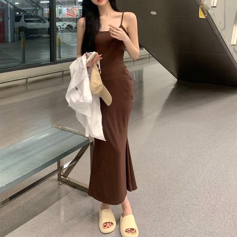 ワンピース キャミソール ワンピドレス ロング丈 スクエアネック スリム タイト 細身 マーメイド フィッシュテール 無地 きれいめ シンプル 大人 上品 おしゃれ お洒落 クール セクシー 春 夏 二次会 10代 20代 30代 40代 レディース 女性用 デート お出かけ 女子会 休日 パーティー リゾート ショッピング 公園 着回し 普段使い 韓国 韓国系 オルチャン ファッション コーデ スタイル モテ 美脚 脚長 高見え デイリー 色展開 黒 ブラック 茶色 ブラウン サイズ展開 フリーサイズ
