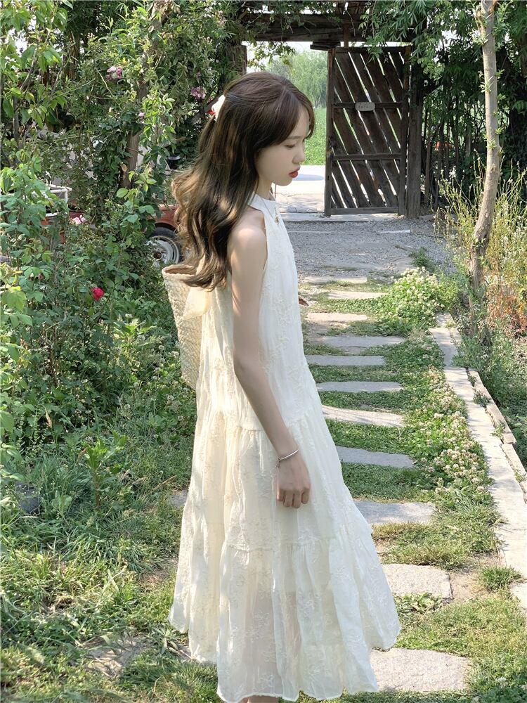 レディース ワンピース プルオーバー ロングスカート ロング ノースリーブ ホルターネック Aライン フェミニン ふんわり レース かわいい 大人可愛い きれいめ シンプル カジュアル 上品 おしゃれ ガーリー ルーズ エレガント とろみ感 キュート 無地 春 夏 謝恩会 結婚式 デート お出かけ パーティー イベント 海 プール レストラン バカンス ホテル ガーデン 韓国 コーデ 楽ちん 体型カバー 普段使い 着回し モテ トレンド 流行 インスタ映え S M L ゆったり ホワイト ネイビー