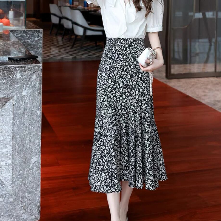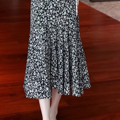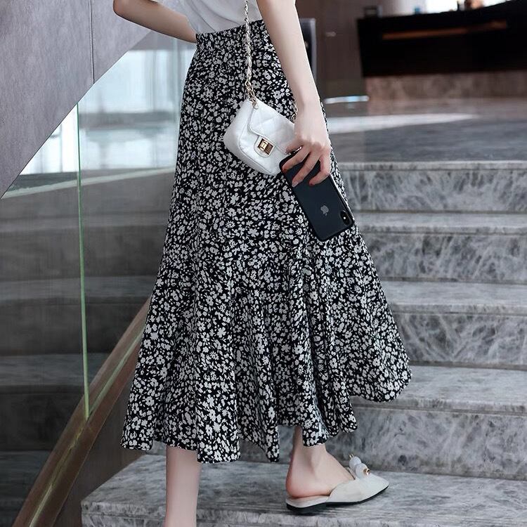 スカート ボトムス ロングスカート Aライン ロング ロング丈 フレア マーメイド フィッシュテール シフォン ハイウエスト 柄 花柄 小花柄 フラワー 大人可愛い きれいめ 大人 上品 おしゃれ お洒落 フェミニン 春 夏 10代 20代 30代 40代 レディース 女性用 デート お出かけ ショッピング 公園 着回し 普段使い 韓国 韓国系 オルチャン ファッション コーデ スタイル モテ あざと可愛い ワンホン デイリー 色展開 黒 ブラック サイズ展開 M L XL 2XL 3XL 大きいサイズ