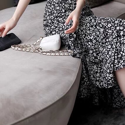 Aラインに広がる裾のドレープが、歩く度に揺れ動きエレガントな雰囲気です。