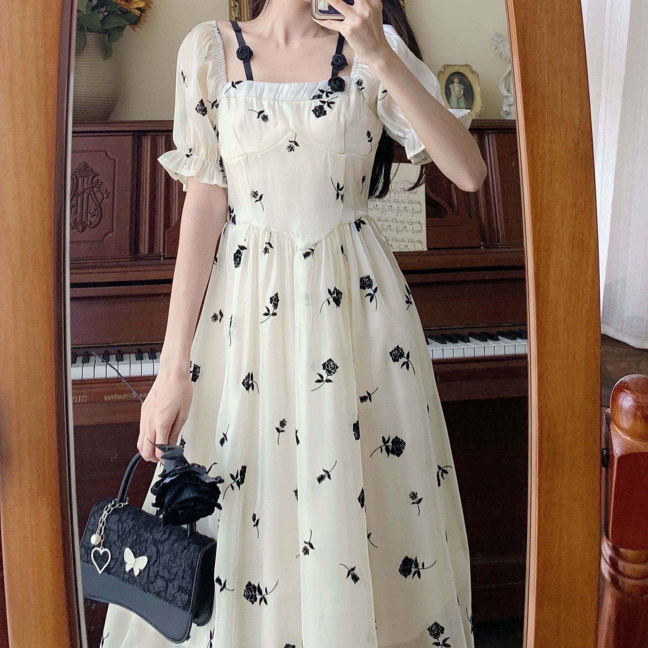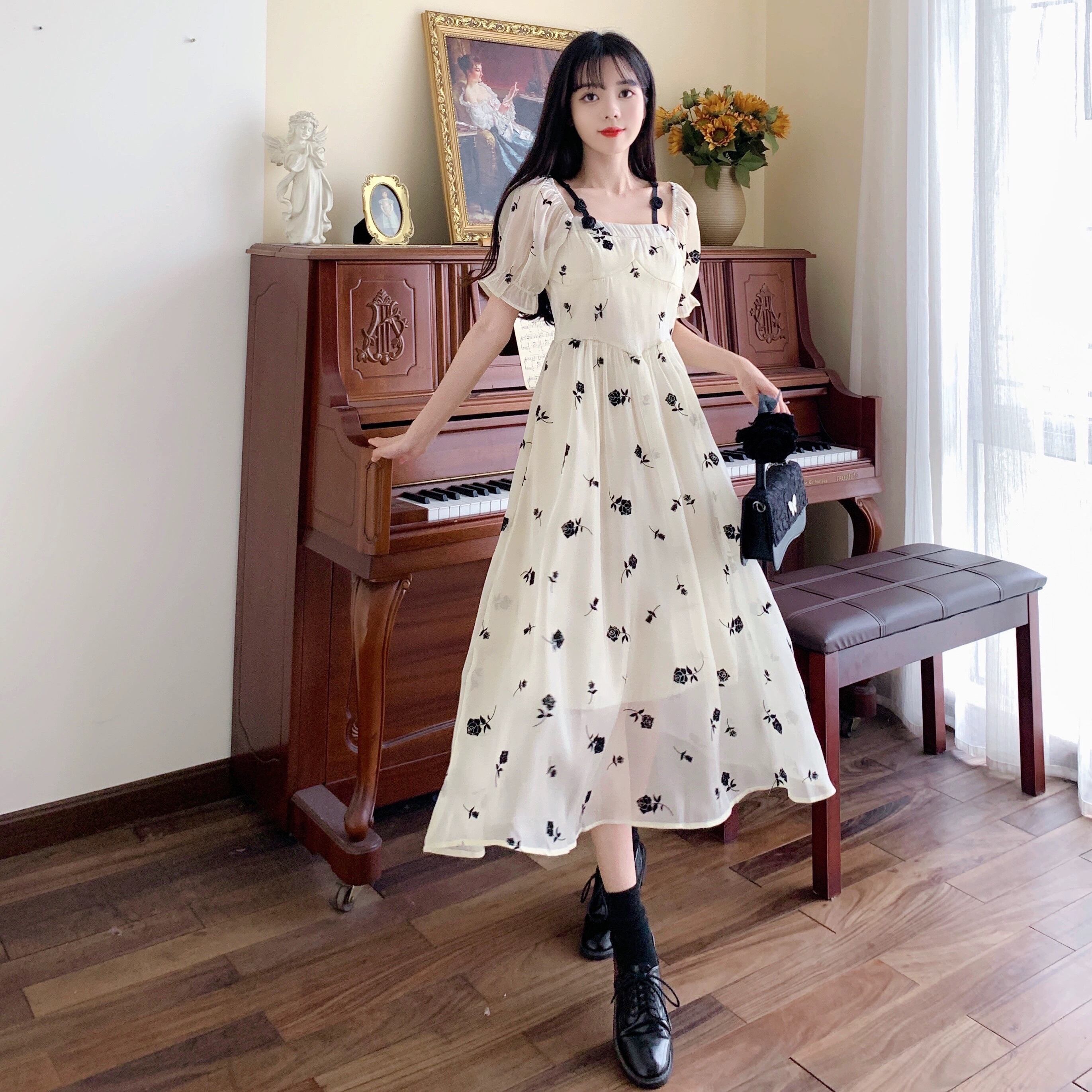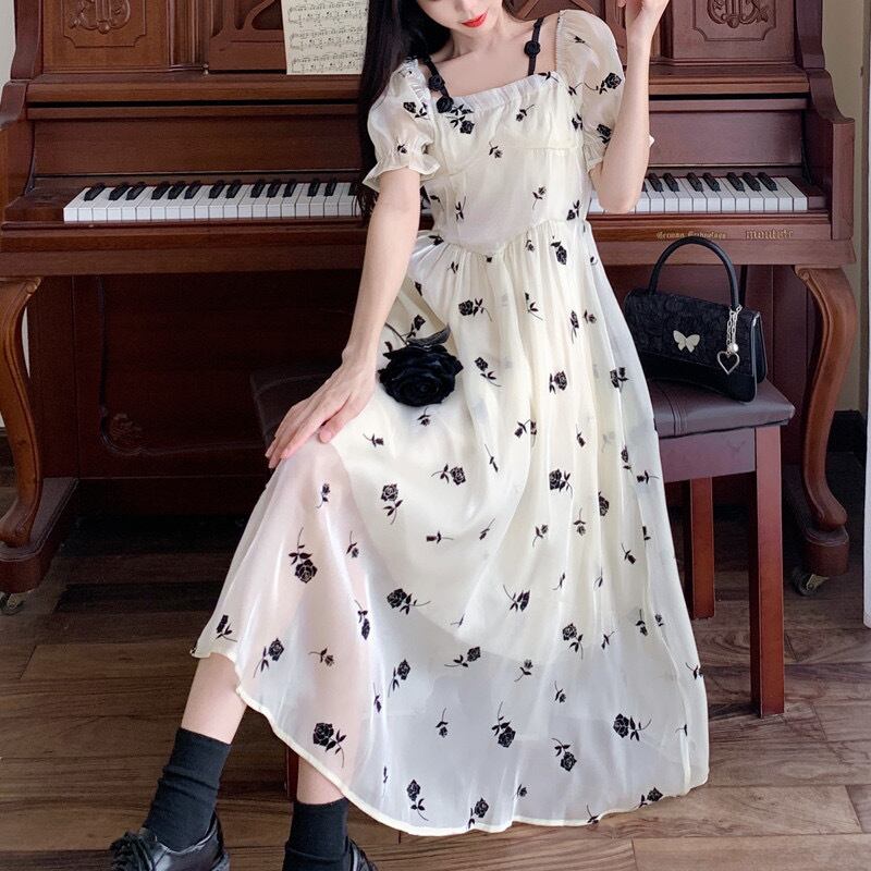 ワンピース フレアワンピース ロング丈 袖あり 半袖 スクエアネック 襟なし スリム 細身 Aライン ふわふわ ポケット 透け感 プルオーバー 薄手 大人可愛い きれいめ シンプル カジュアル 大人 上品 お洒落 かっこいい レトロ 大人可愛い 大人女子 こなれ感 ラフ ラブリー キュート ガーリー モダン 主役級 存在感 とろみ感 抜け感 花柄 夏 10代 20代 レディース デート お出かけ 女子会 休日 普段使い 韓国 オルチャン モテ トレンド 流行 M L XL 2XL 3XL 4XL ホワイト