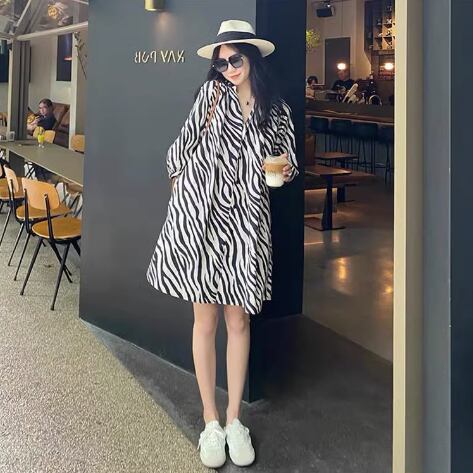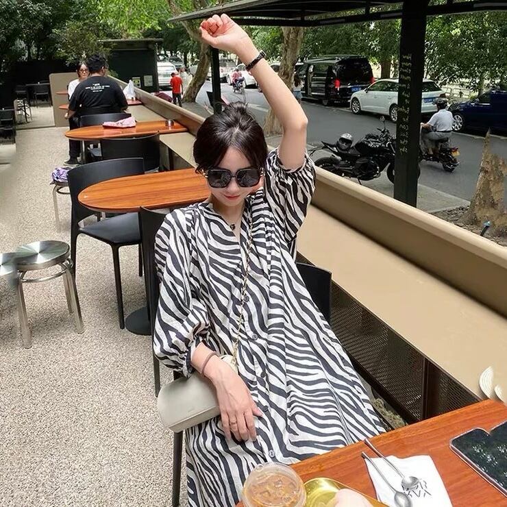 ワンピース シャツワンピース ミディアム丈 袖あり 五分袖 ルーズ Aライン プルオーバー 薄手 大人可愛い きれいめ カジュアル 大人 上品 お洒落 かっこいい レトロ 大人可愛い 大人女子 こなれ感 ラフ ラブリー キュート 主役級 存在感 とろみ感 抜け感 セブラ柄 夏 10代 20代 レディース デート お出かけ 女子会 お泊まり 休日 アウトドア 旅行 ショッピング 普段使い 韓国 韓国系 オルチャン ファッション コーデ 楽ちん モテ トレンド 流行 L XL 2XL 3XL 4XL ブラック