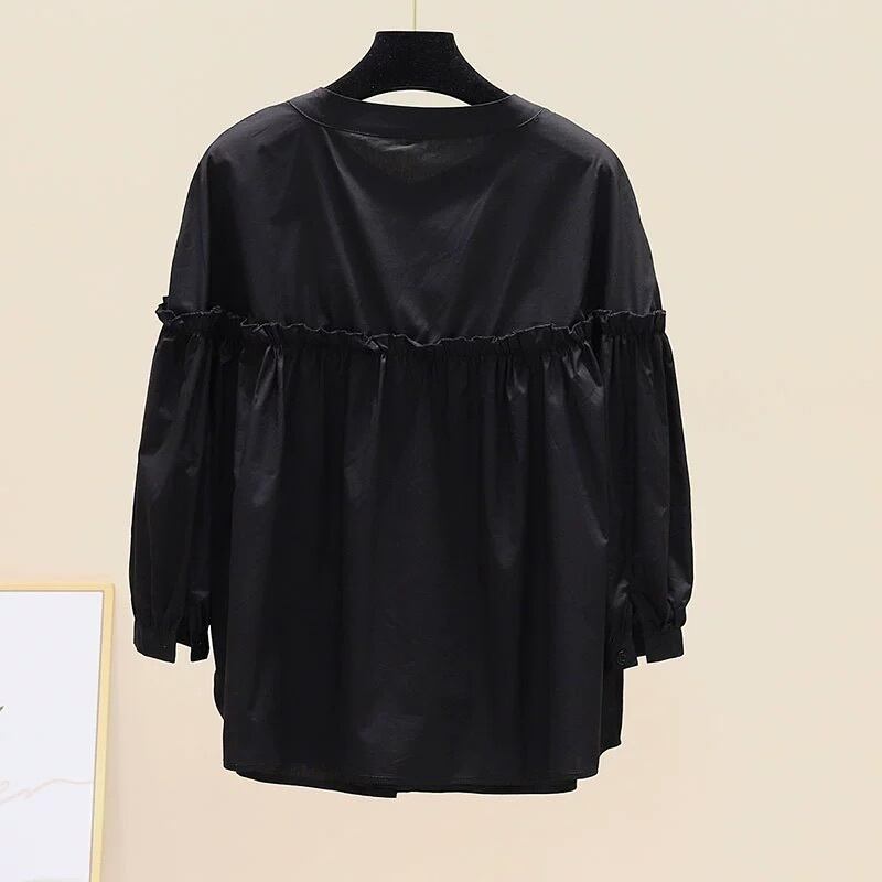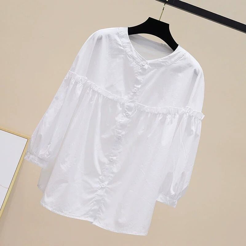 トップス シャツ レギュラー丈 袖あり 七分袖 ラウンドネック 襟なし ルーズ フリル 前開き 薄手 大人可愛い きれいめ カジュアル 大人 上品 お洒落 かっこいい レトロ 大人可愛い 大人女子 こなれ感 ラフ クール モード系 エレガント モダン 主役級 存在感 とろみ感 抜け感 無地 ストライプ 夏 10代 20代 30代 レディース OL 通勤 学生 通学 デート お出かけ 女子会 お泊まり 休日 普段使い 韓国系 オルチャン 楽ちん モテ トレンド 流行 M L XL ホワイト ブラック ブルー