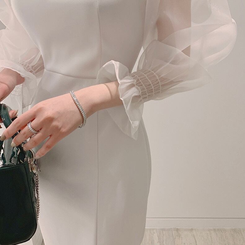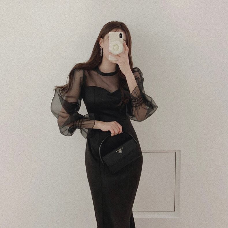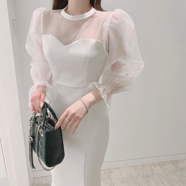 ワンピース ワンピドレス ロング丈 パフスリーブ マーメイド フィッシュテール シフォン ハイウエスト 透け感 シースルー 無地 大人可愛い きれいめ シンプル 大人 上品 おしゃれ お洒落 大人女子 主役級 存在感 春 夏 秋 謝恩会 結婚式 二次会 10代 20代 30代 40代 レディース 女性用 ママ デート お出かけ 女子会 休日 パーティー イベント レストラン ショッピング 韓国 韓国系 オルチャン ファッション コーデ スタイル 色展開 白 ホワイト 黒 ブラック サイズ フリーサイズ