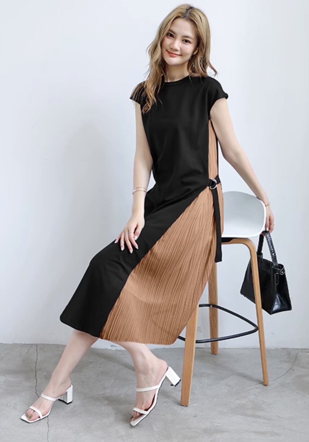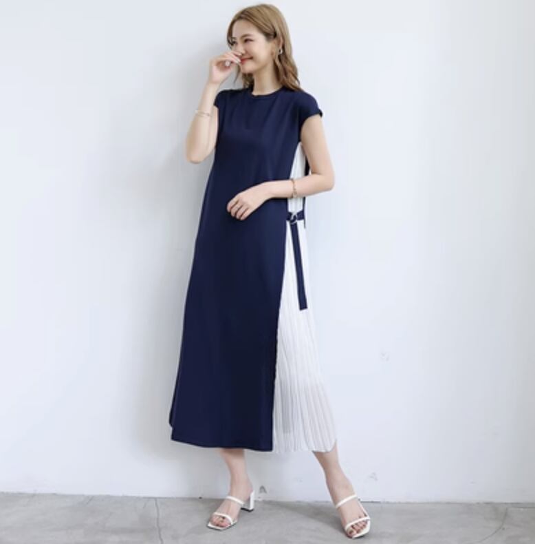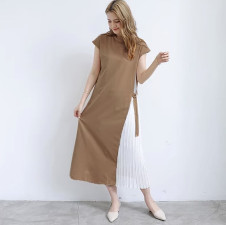 ワンピースとプリーツスカートがドッキングしたお洒落な一着になります。