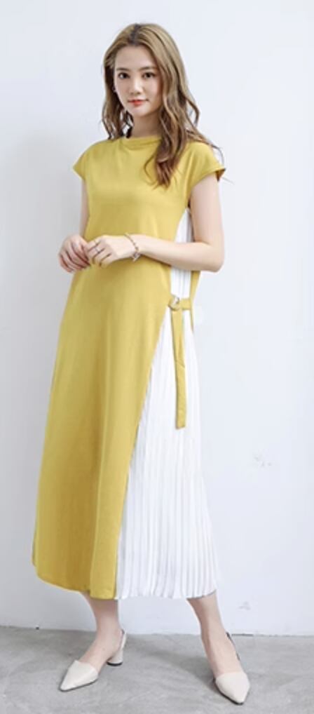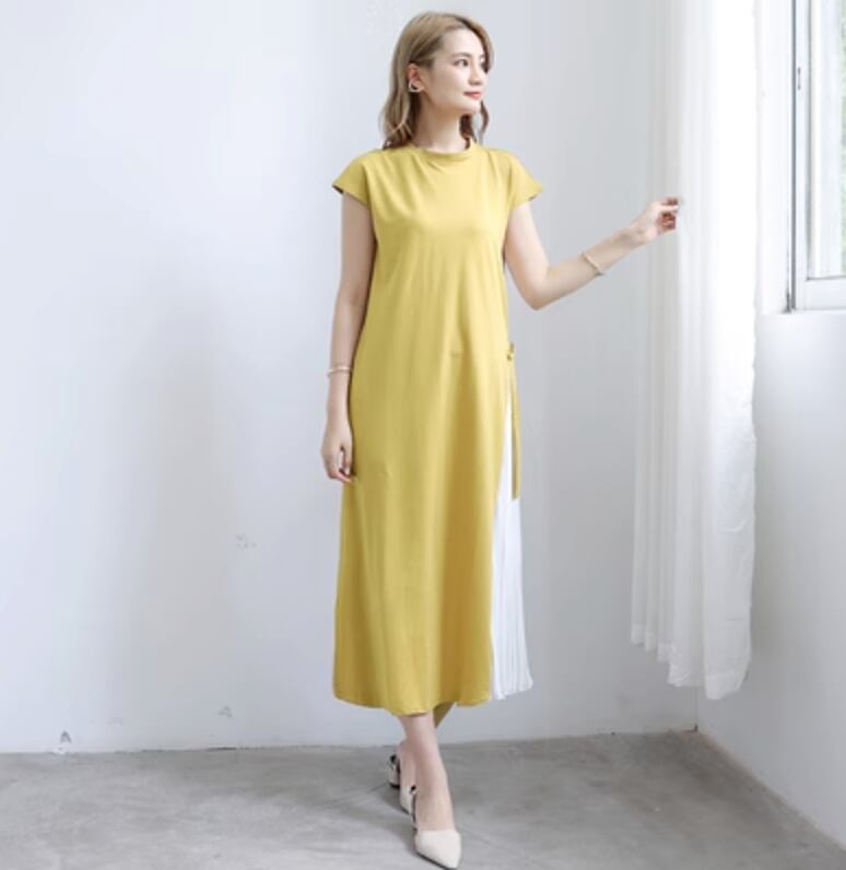 レディース スカート ワンピース Tシャツ フレアワンピース ワンピドレス ロング ロング丈 袖あり 半袖 ラウンドネック セミフレア Aライン プリーツ 切り替えデザイン ドッキング 可愛い 大人可愛い 大人 上品 お洒落 大人女子 こなれ感 ラフ 主役級 存在感 無地 春 夏 20代 30代 女性用 ビジネス OL 通勤 学生 通学 デート お出かけ 女子会 休日 普段使い ファッション 楽ちん 体系カバー L XL ゆったり ゆる モテ 白 ホワイト 黒 ブラック 茶色 ブラウン 黄色 ネイビー